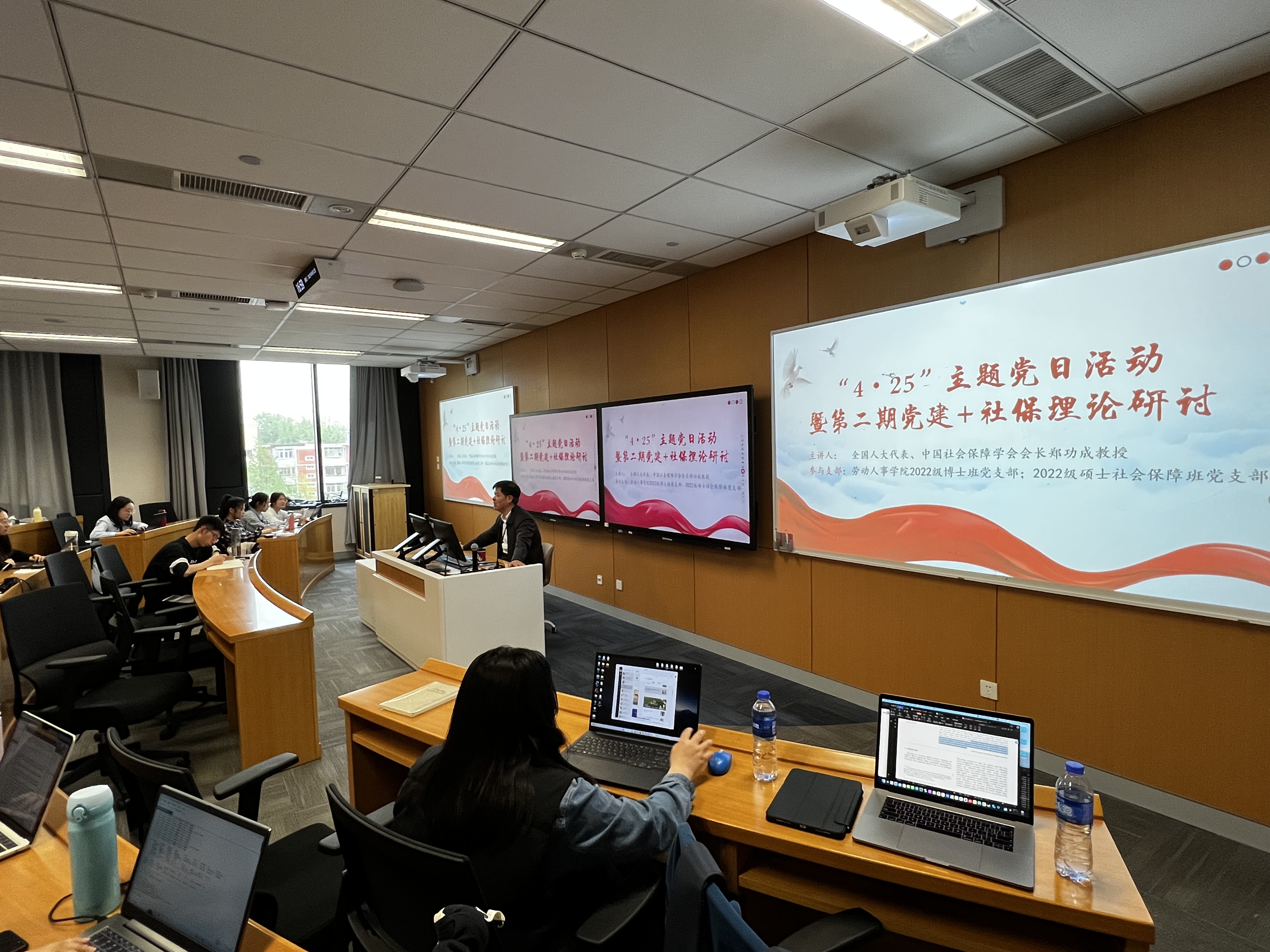 为贯彻落实习近平新时代中国特色社会主义思想主题教育“学思想、强党性、重实践、建新功”的总要求与习近平总书记考察太阳集团tyc539时的重要讲话精神,支部联合2022级博士班党支部开展“4·25”主题党日活动暨第二期“党建+社保理论研讨”。本次活动以 “两会中的社保观察”为主题,分为交流研讨与成果汇报两个环节,由2022级硕士社会保障班党支部书记吴潇主持。