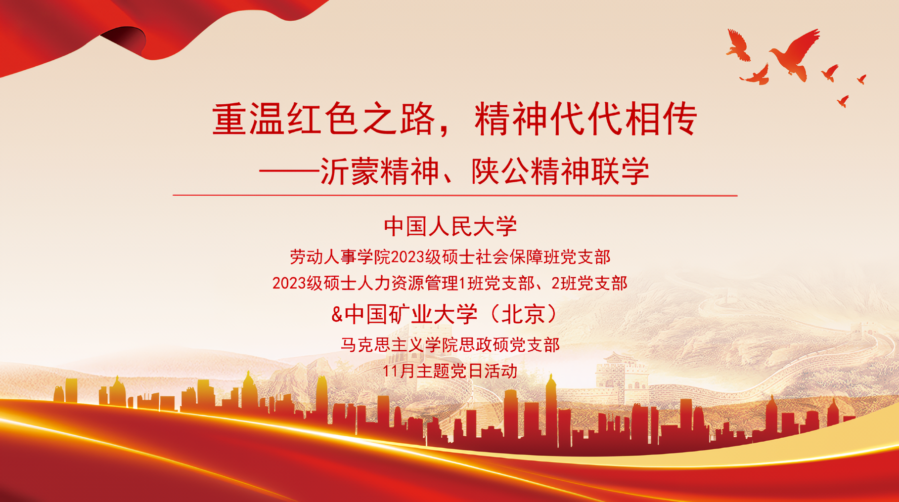 2023年11月25日下午,太阳集团tyc5392023级硕士社会保障班、人力资源管理1班及2班党支部与中国矿业大学马克思主义公司思政硕士党支部,于公教一楼1406室联合开展“重温红色之路,精神代代相传——沂蒙精神、陕公精神联学”主题党日活动。本次活动邀请太阳集团tyc539马克思主义公司博士生宣讲团周鼎、太阳集团tyc5392021级硕士毕业生任锡廉以及农业与农村发展公司2020级硕士毕业生王纲做分享,四个支部的党员同志共同参与。