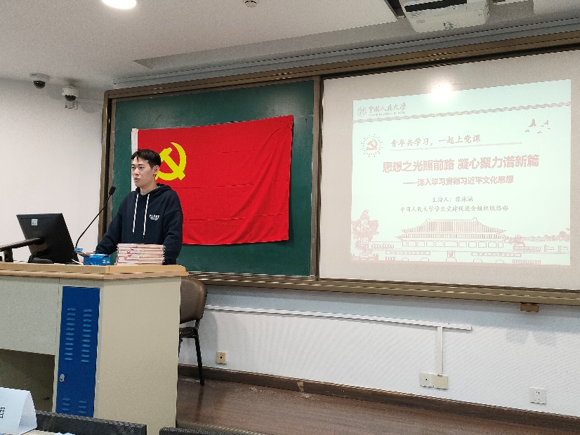 活动开始,黎泳涵首先介绍了本次活动的学习目标,明确支部成员学习掌握习近平文化思想的深刻内涵,鼓励支部之间加强交流与联系,基于跨学科视角,增强对习近平文化思想的认识与理解。