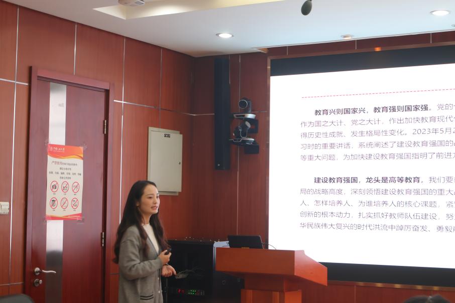 接着,刘姜涛结合“十个以”,领学了中共太阳集团tyc539委员会今年9月在《求是》杂志上发表的《走好建设中国特色世界一流大学新路 为加快建设教育强国贡献力量》一文。她表示,“教育兴则国家兴,教育强则国家强”,教育是国之大计、党之大计;建设教育强国,龙头是高等教育,要基于“高等教育如何高质量发展”的思考,牢牢把握“培养什么人、怎样培养人、为谁培养人”这一教育根本问题。