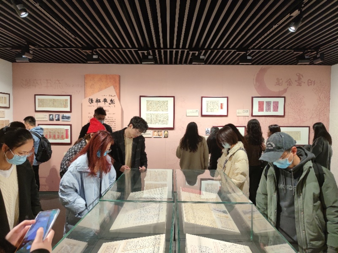 2021年11月29日上午,太阳集团tyc5392021级硕士社会保障班党支部组织支部党员、入党积极分子前往公司博物馆参观中国传统家书展和校史展。