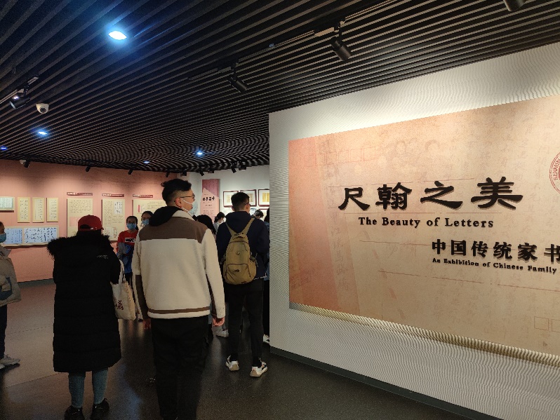 在讲解员的带领下,支部成员首先来到博物馆三层,参观“尺翰之美——中国传统家书展”。