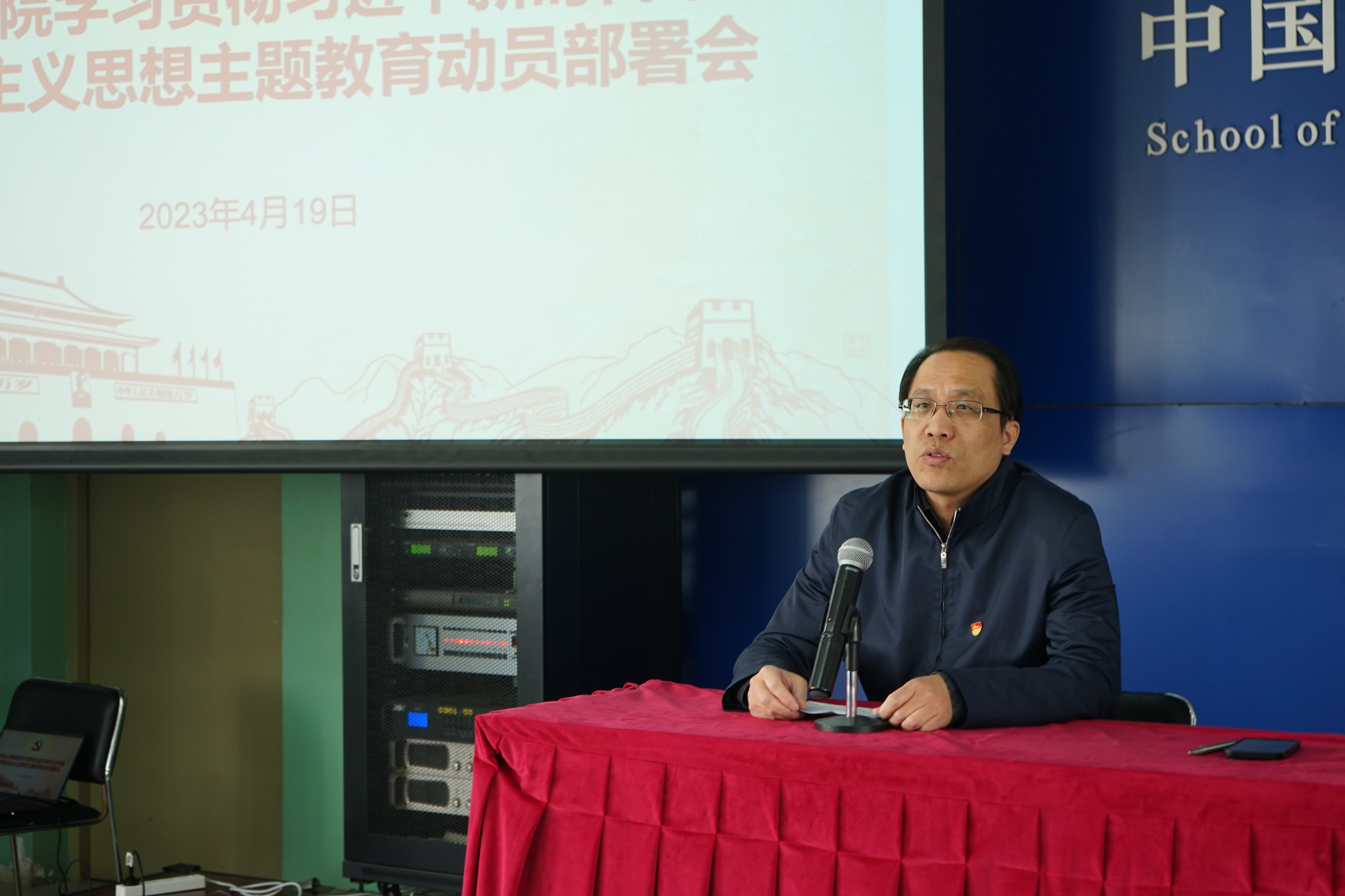 2022级硕士社会保障班党支部书记吴潇作为员工党支部书记代表发言。他表示,员工党支部将积极落实公司党委要求,找准定位,做好应尽职责,保证主题教育部署落地;党支部将始终把学习贯彻习近平新时代中国特色社会主义思想作为支部工作的核心内容,以导师领学、支部联学、校外研学、党建+学科理论研讨等形式开展各项主题学习与实践活动。他还从主题教育的要求出发,介绍了党支部的具体工作计划。