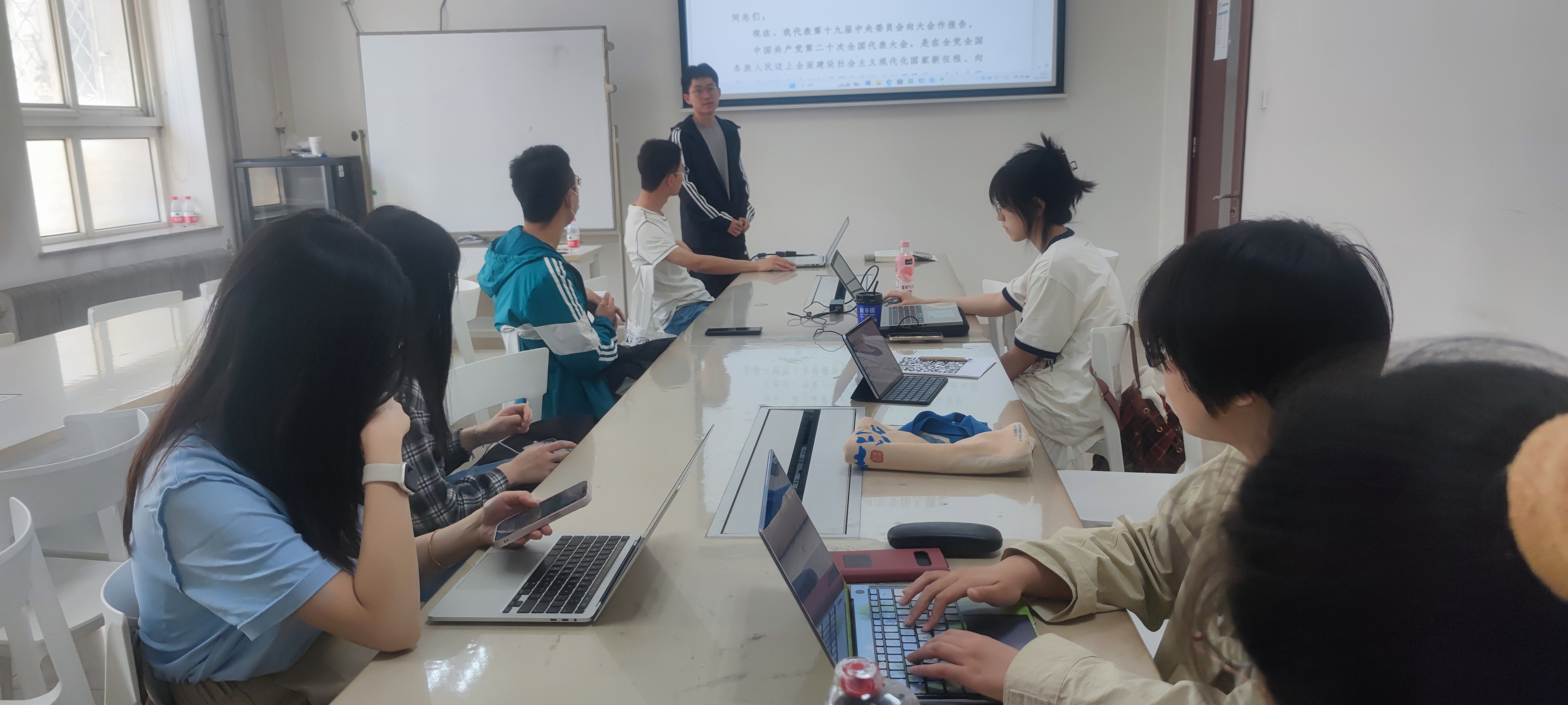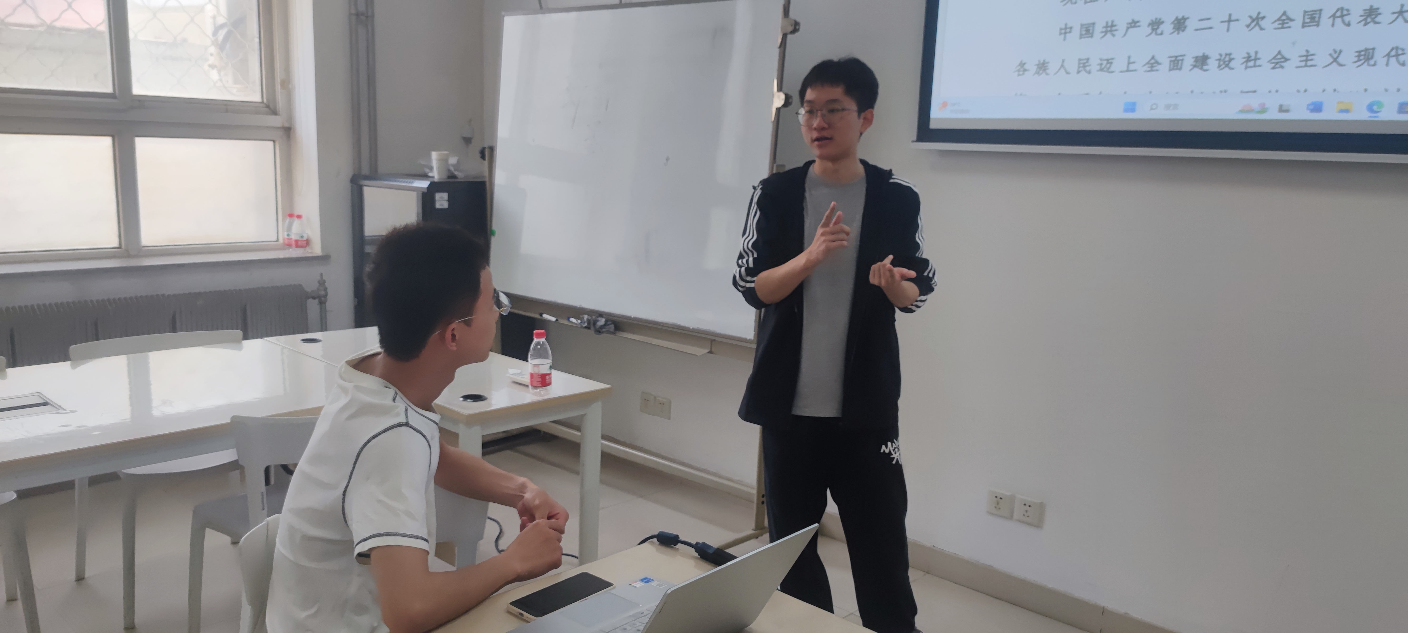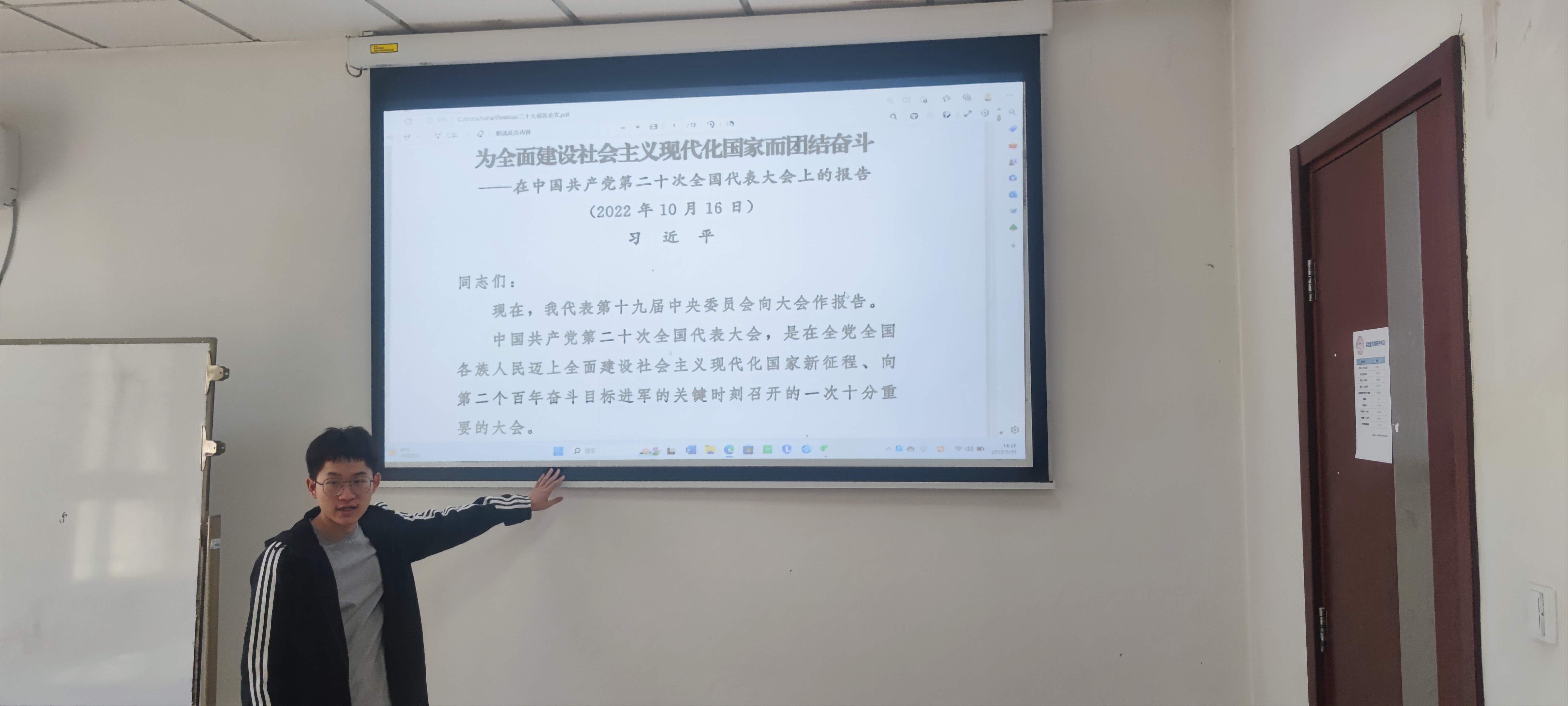 2023年5月10日下午,以“学思想悟原理,育栋梁争先锋为主题”的学习贯彻习近平新时代中国特色社会主义思想主题教育员工读书班第一期在求是楼119会议室顺利举行。首次读书班针对党的二十大报告开展交流分享。2021级人力资源管理一班党支部书记曾昊同志领学。来自多个基层员工支部的十余名员工党员、积极分子参与了本次读书班。