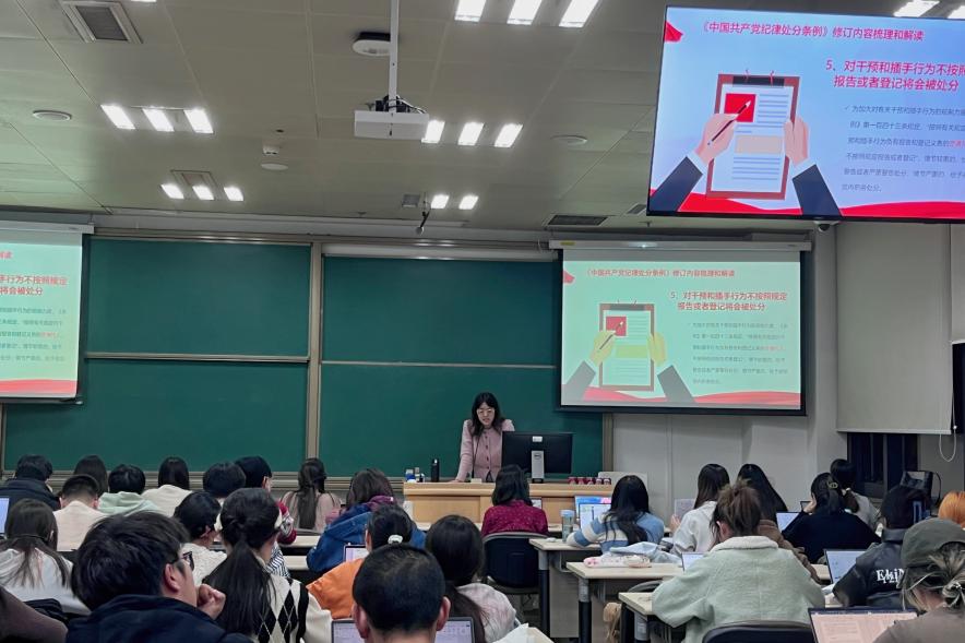 其次,刘依梓同志对最新修订的《中国共产党纪律处分条例》内容进行了梳理和解读,详细介绍了新旧条例在表述、定性上的区别和联系,带领大家重点学习了新增内容。刘依梓同志倡导各位同志要将学习贯彻新修订的《条例》作为重要政治任务,在日常学习和工作中,严明党的纪律,强化自我约束,凝聚干事创业的精气神。
