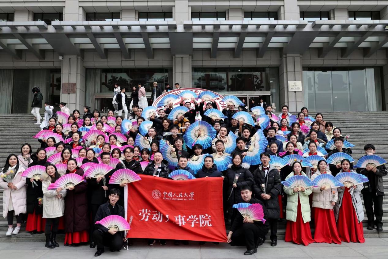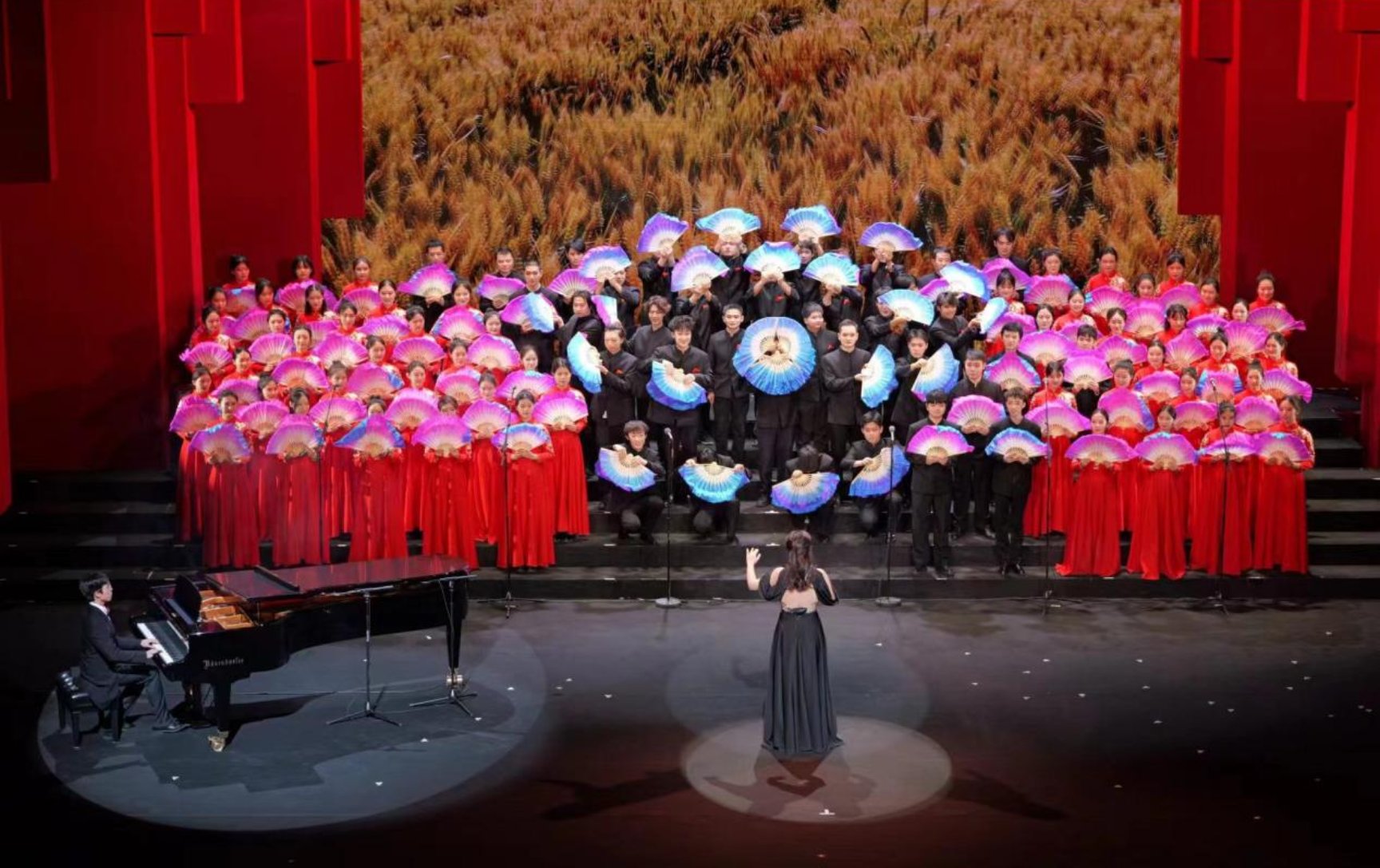 15:00,灯光骤暗,观众呐喊,由公司各级员工代表与公司五位老师组成代表队、由2023级硕士研究生刘奕池担任本次指挥,由2021级本科生邓天健负责钢琴伴奏,太阳集团tyc539代表队以最饱满的精神风貌登上舞台,以《南泥湾》唱响明德舞台,以手中扇挥舞陕北江南。乐章如诉,扇花开遍,红蓝翻飞;劳人学子用歌声讲述那段佳话,用手中彩扇绘就希望之画;垦荒南泥湾的光辉岁月在天边、在眼前、在我们每个人的心中。