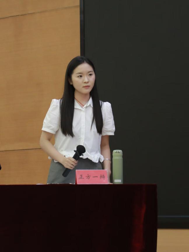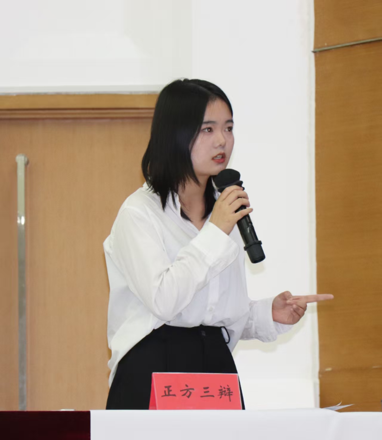本场辩论赛的辩题是“愿意/不愿意生活在只有真话没有谎言的世界”,公司持方为正方,即“愿意生活在只有真话没有谎言的世界”,上场的四位辩手分别为2024级本科生燕琳然、左焕达、祝婧依、王聆语。