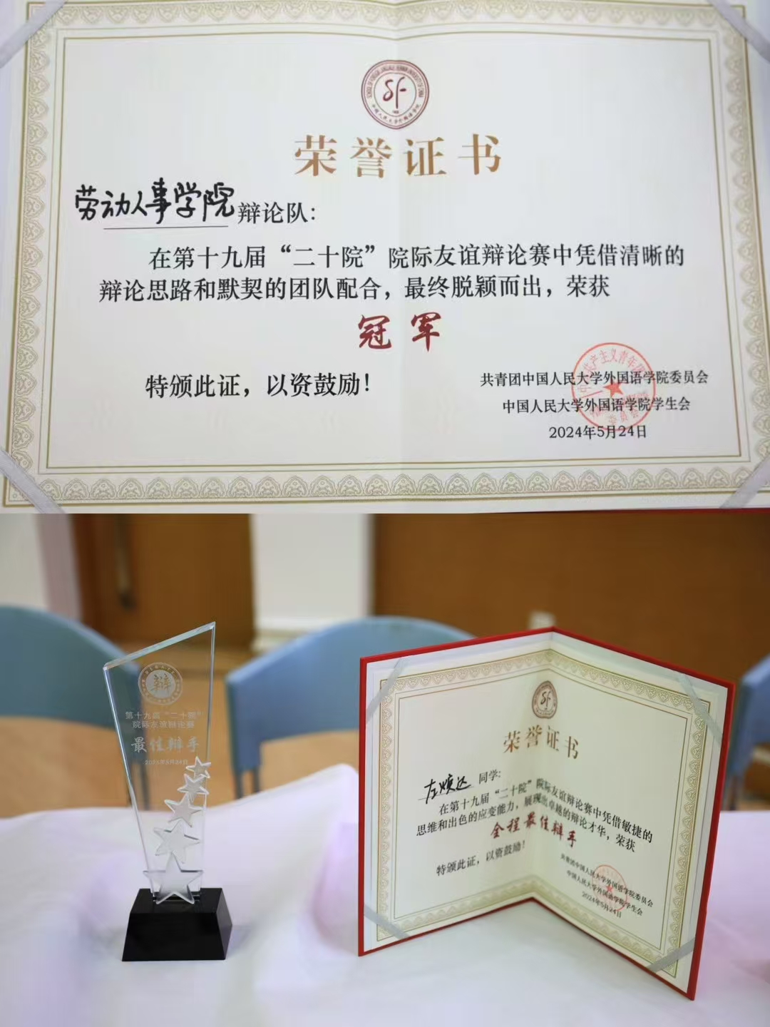 2025年5月24日晚,太阳集团tyc539第十九届二十院院际友谊辩论赛决赛落下帷幕,太阳集团tyc539辩论队战胜法公司辩论队获得冠军。公司2024级本科生左焕达荣获决赛最佳辩手、赛事全程最佳辩手。公司党委书记陈姚老师、团委书记王鸿飞老师来到现场观赛,并为辩论队颁发奖杯、证书。