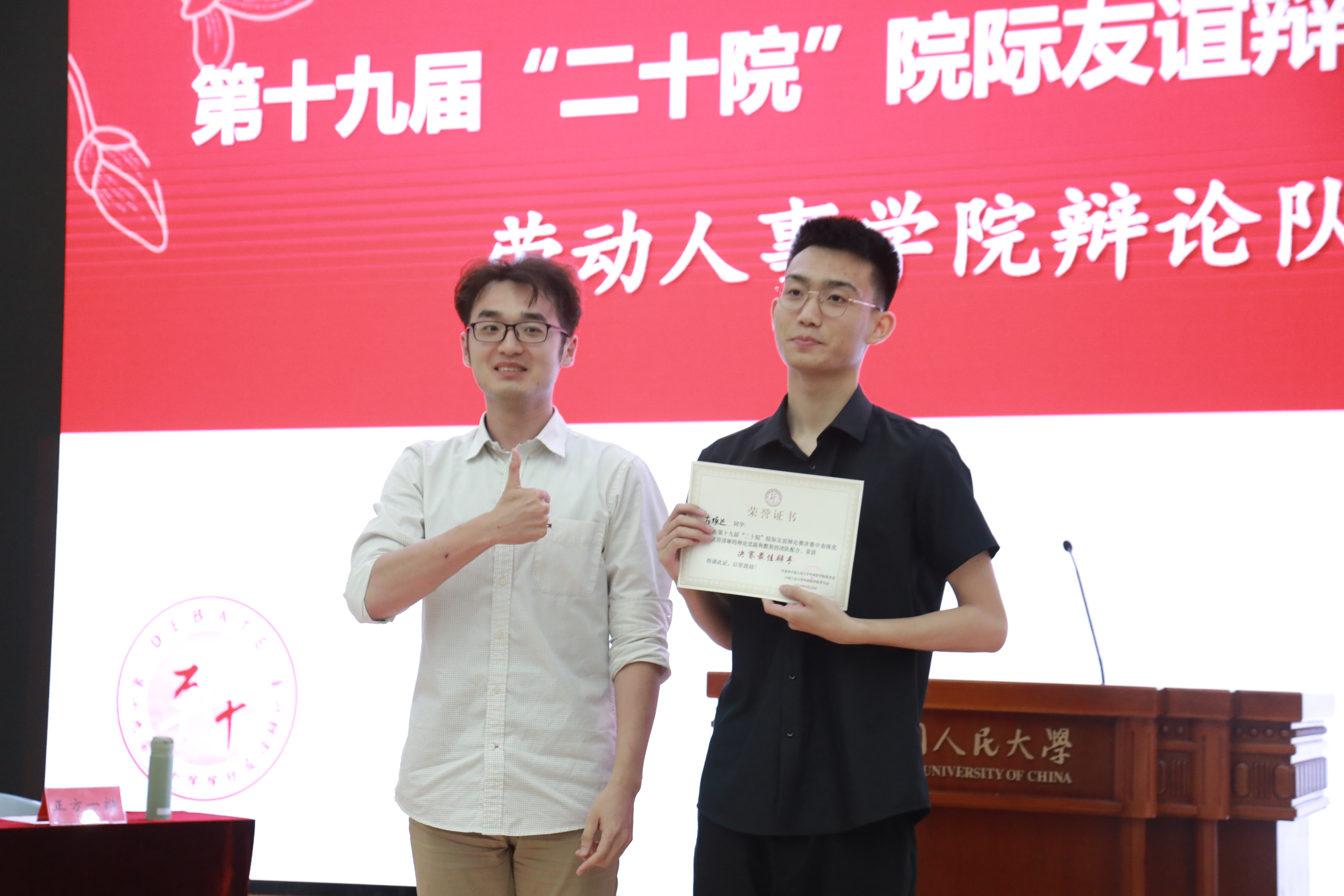 (王鸿飞老师为最佳辩手左焕达颁奖)
