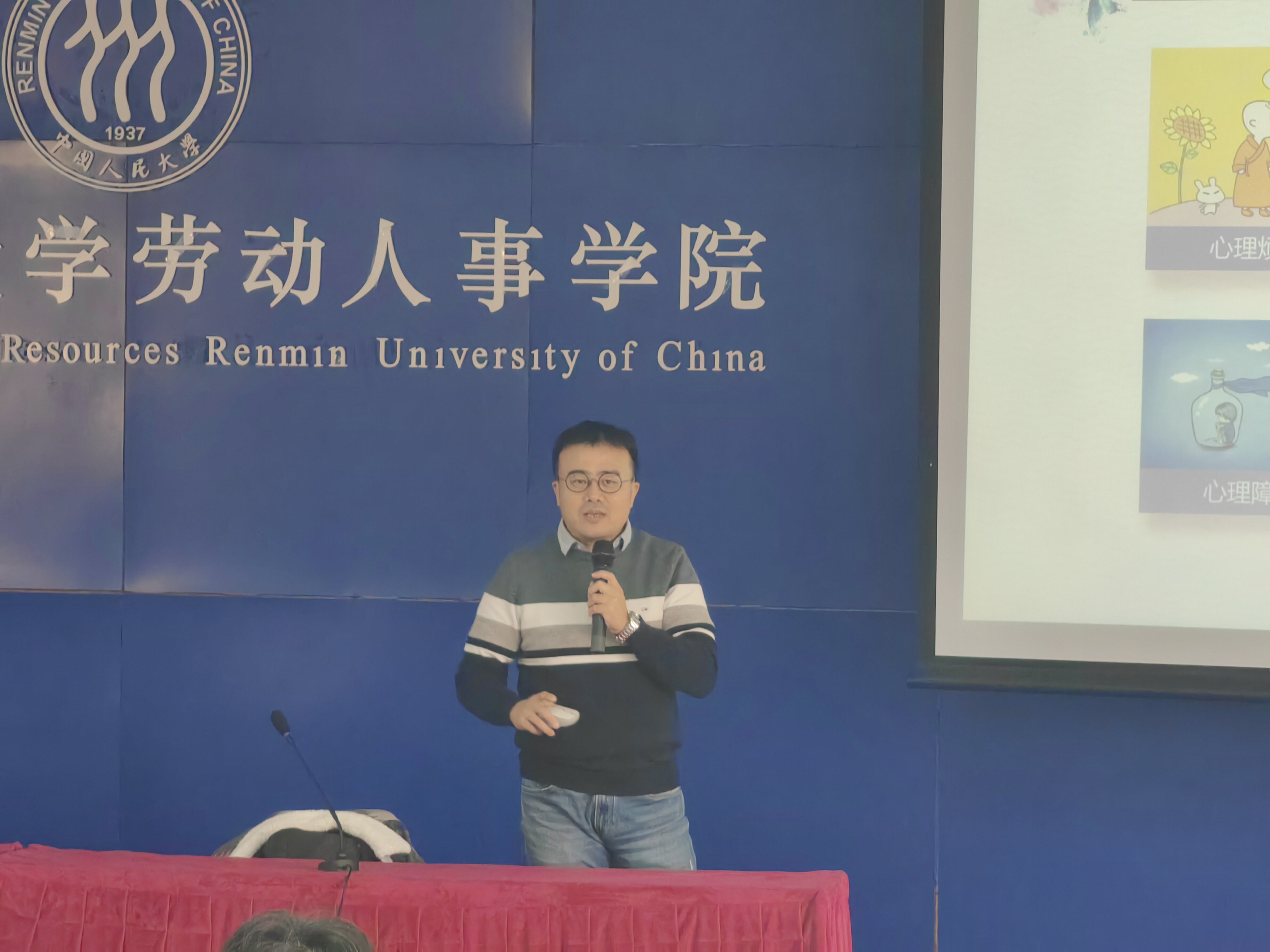 随后,公司心理咨询中心咨询师袁萌老师与在场师生分享了异常心理识别和应对的相关知识。他首先深入剖析了心理状态层级的划分,从心理烦恼到心理问题,再到心理障碍直至心理疾病,对每一层级都进行了详尽阐述。紧接着,袁老师又细致入微地介绍了抑郁症、双相障碍、焦虑症、强迫障碍及精神分裂症等心理疾病的典型症状与有效应对方式,为在场师生提供了有效的知识支持。