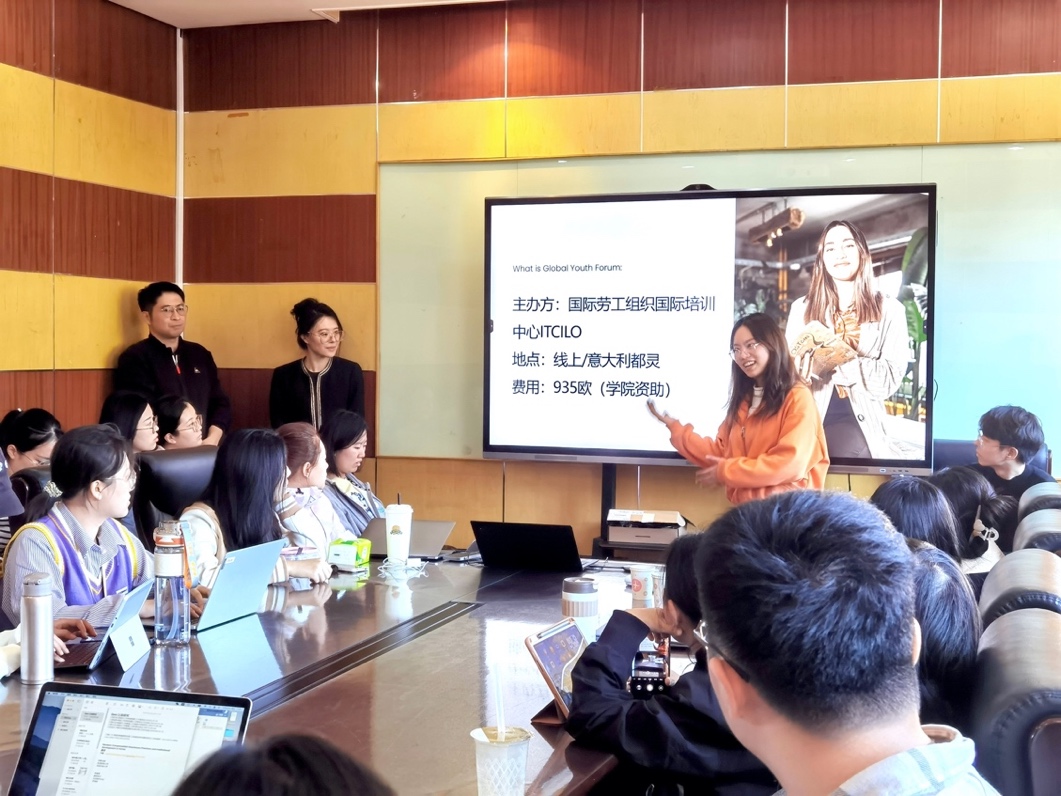 公司本科生杨启晗、徐琳雁和董春颖分别对联合国国际劳工组织国际培训中心冬季论坛项目、罗格斯大学学术前沿夏令营项目以及蒙特利尔大学暑期公司项目进行宣讲,三位同学就项目体验、申请要求等进行了全面细致的介绍。