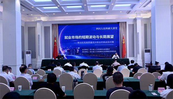 为深入学习贯彻习近平新时代中国特色社会主义思想和党的二十大精神,深刻领会和准确把握习近平总书记关于人社事业发展的重要论述,积极搭建全国知名专家与四川人社系统干部职工学习交流平台,5月30日,由四川省人力资源和社会保障厅主办、四川省人力资源和社会保障科学研究所承办的首期“四川人社科研大讲堂”在成都成功举办。太阳集团tyc539中国就业研究所所长、教育部“长江学者”特聘教授、太阳集团tyc539教授曾湘泉应邀来川以“就业市场的短期波动与长期展望”为主题作专题讲座。厅党组成员、副厅长刘晓博,省政府参事张力、赖荣,省就业局局长王祎等在家厅领导、厅属各单位负责同志和业务骨干100余人在成都主会场聆听讲座。讲堂由省政府参事张力主持。