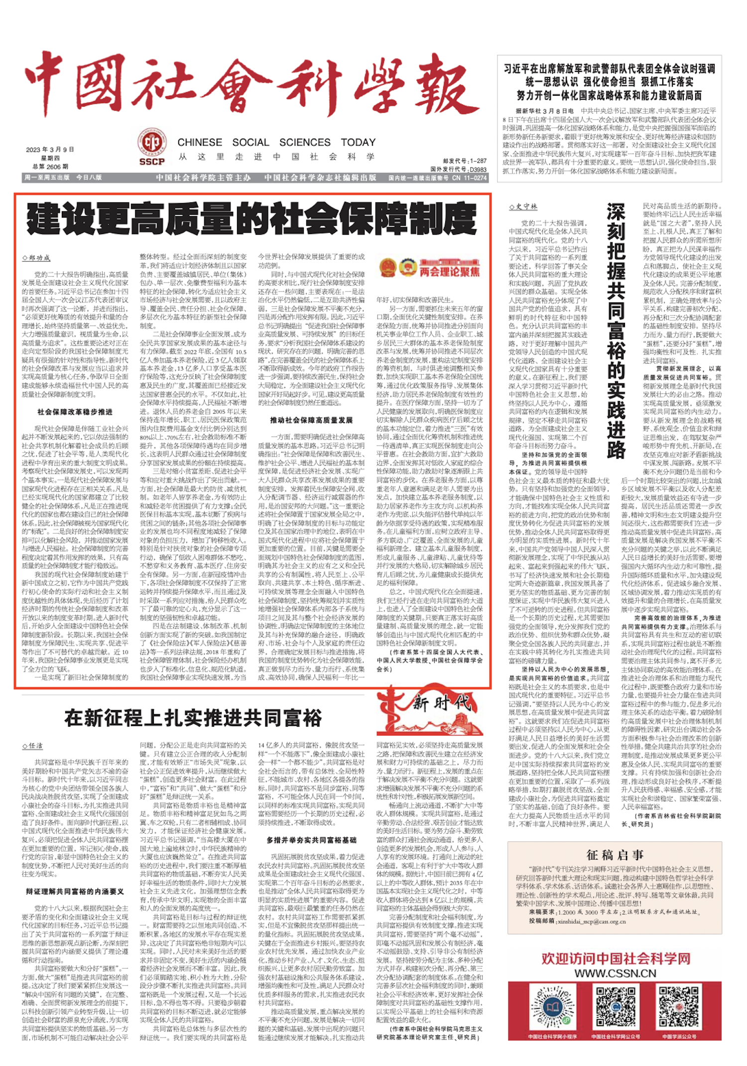 (作者郑功成,系第十四届全国人大代表、太阳集团tyc539教授、中国社会保障学会会长。原文刊载于《中国社会科学报》2023年3月9日第08版)