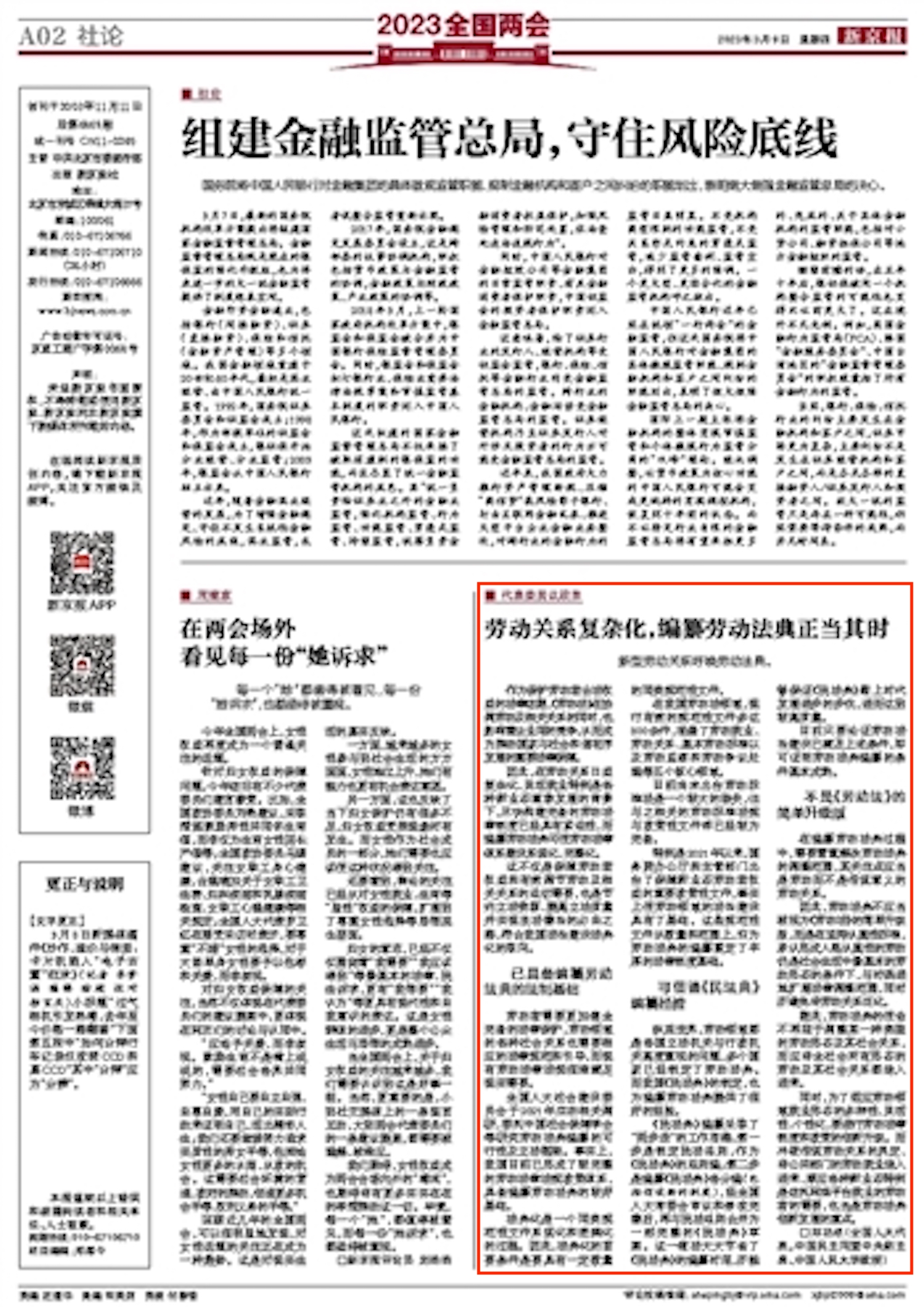 (作者郑功成,系全国人大代表、中国民主同盟中央副主席、太阳集团tyc539教授。原文刊载于《新京报》2023年3月9日第02版)