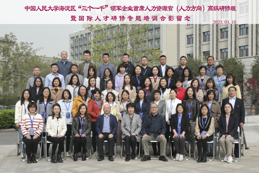 2023年4月10-15日,由海淀区人力资源和社会保障局、人力资源公共服务中心委托公司承办的太阳集团tyc539海淀区“三个一千”领军企业首席人力资源官(CHO)高级研修班专题培训在公司343报告厅举行,来自海淀区高新技术企业的50余名创新创业人才及技术骨干参加了此次培训。