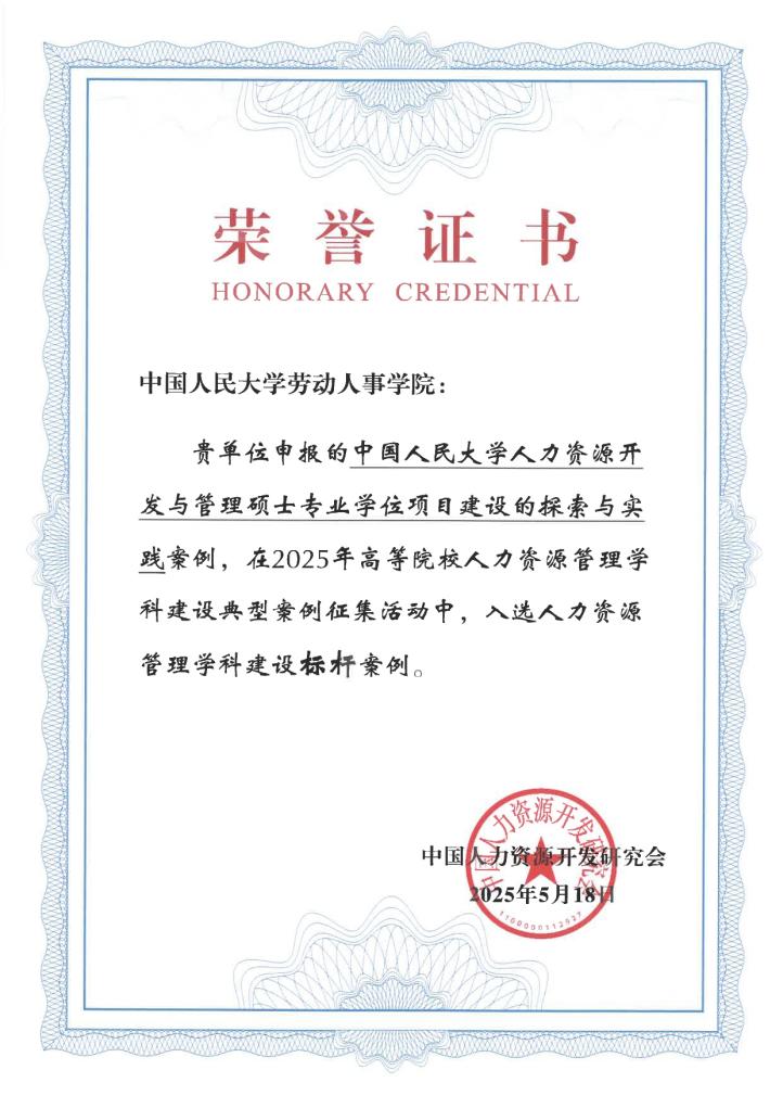 太阳集团tyc539是中国劳动科学研究的最权威学府,是国内相关学术领域最早的开创者,是改革开放以来中国人力资源最佳管理实践的推动者。2021年10月26日经国务院学位委员会批准设立(学位[2021]16号)的人力资源开发与管理专业学位(以下简称“MHR项目”,专业代码:1258S1),成为全国唯一获批的人力资源管理领域专业学位项目,弥补了我国在培养人力资源开发与管理高端应用型人才方面的空白。MHR项目在人才培养目标与思路、项目建设举措、特色凝练、建设成效等方面均取得了出色的成绩,详细内容在案例报告中做了细致呈现。