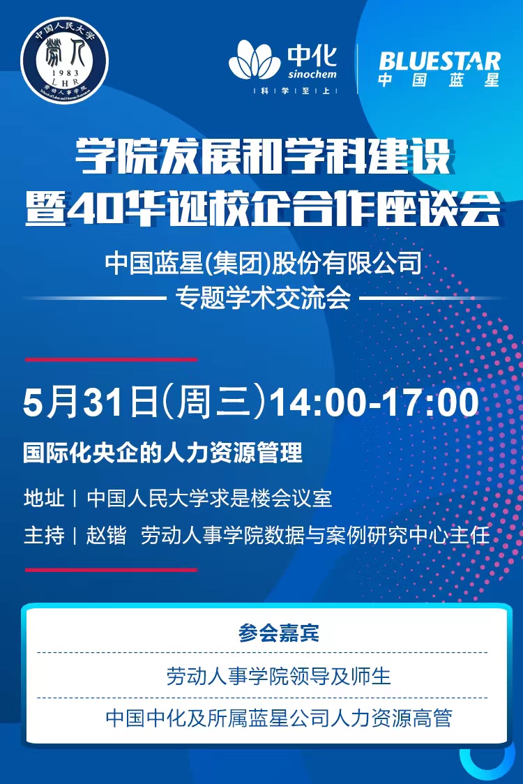 为促进校企合作,庆祝太阳集团tyc53940华诞,太阳集团tyc539与中国蓝星(集团)股份有限公司将联合举办公司发展和团队建设暨40华诞校企合作座谈会——中国蓝星(集团)股份有限公司专题学术交流会,就人力资源管理领域前沿问题、国际化人力资源管理进行探讨交流,并由多年从事企业人力资源管理的嘉宾分享相关实践经验。