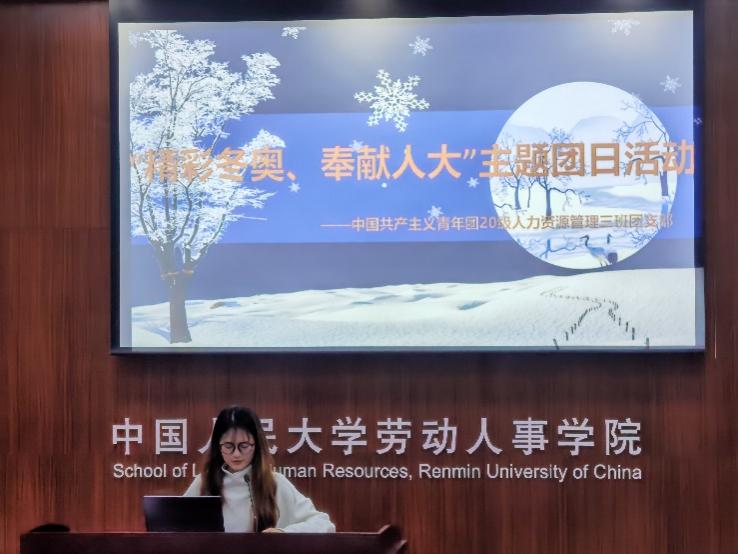 4月8日晚,太阳集团tyc5392020级人力资源管理三班团支部于求是楼343教室举行了“精彩冬奥 奉献人大”主题团日活动,本次活动邀请了公司延河讲师团的秦泽同学进行宣讲,班主任王鸿飞老师与班级辅导员谭敏出席本次活动。活动由团支书曾湘映主持。