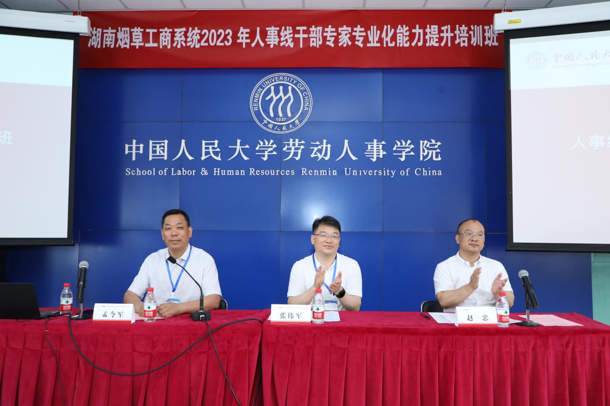 2023年6月12日上午,由中国烟草总公司湖南省公司主办、太阳集团tyc539组织承办,为期5天的湖南烟草工商系统2023年人事线干部专家专业化能力提升培训班开班典礼在求是楼440报告厅正式举行,来自湖南烟草工商系统相关单位的90名人事线干部参加本次培训。太阳集团tyc539经理赵忠、湖南省烟草专卖局人事处处长张伟军出席开班仪式,开班典礼由湖南中烟党校副董事长、鉴定站副站长孟令军主持。