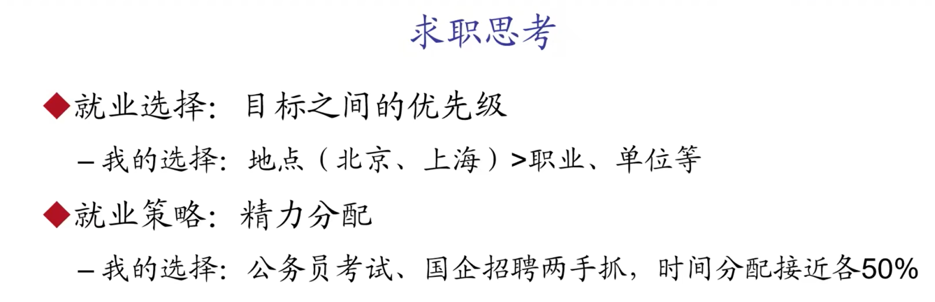 第二位进行分享的是2021届劳经专业硕士毕业的李同学,通过上海选调考取上海市发改委。杨同学着重向同学们分享自身求职思考,在就业选择时注重考虑目标之间的优先级,需结合自己的期望以及自身条件选择合适的地域;在就业策略上注重精力分配,公务员考试和国企招聘两手抓。他从自身备考经验出发,给同学们提出一些真诚的建议,比如树立较稳定的择业目标,多方搜集信息,平稳发力;尽量保持平和和坦然,劳逸结合。