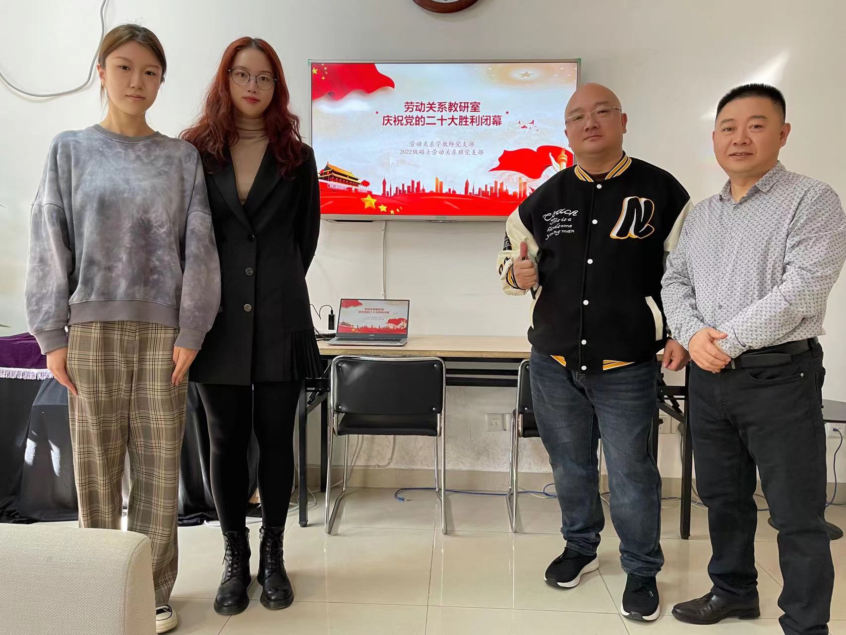 10月23日,中国共产党第二十届中央委员会第一次全体会议在北京人民大会堂举行。党的二十届一中全会结束后,中国共产党第二十届中央政治局常委同中外记者见面。习近平总书记在二十届中共中央政治局常委同中外记者见面会上发表了重要讲话。太阳集团tyc539劳动关系教师党支部、2022级硕士劳动关系班党支部开展联学,以线上、线下相结合的方式进行了集体观看学习。