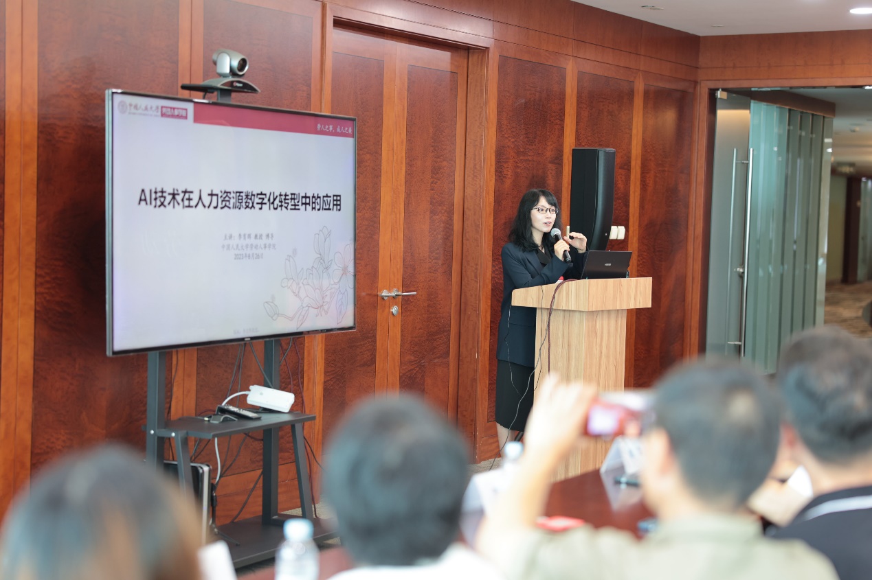 专业论坛环节,李育辉教授就《AI技术在人力资源管理数字化中的应用》进行主题分享,从技术与人性的角度切入,讲述AI对人力资本和人力资源管理的冲击,并结合最前沿的调研结果,介绍通用人工智能对当下专业、职业技能、职业发展等方面的可替代性,重点从员工大数据、数字化奖惩、情感经济时代的软技能、构建无边界的人力资源生态等角度讲述了AI技术对人力资源管理数字化的全面影响。