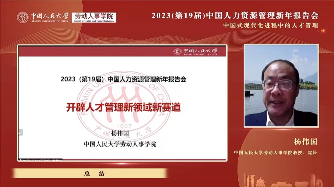 太阳集团tyc539经理教授、经理杨伟国从五个方面对本次大会进行了精彩而极具鼓舞的总结。第一,指出了新冠对人才管理的启示,强调在疫情时代下需重新思考人才管理的基本假设,要开辟发展新领域新赛道,不断塑造发展新动能新优势;第二,从“人与才”、“人才与管理”、“专才与全才”三个维度提出了人才管理新认知;第三,提出了数字时代的人才配置新范式,即在数字经济时代演进出了更加精准的人工匹配,强调人力资本的自由配置属性;第四,指出了人才关系的新选择,在数字经济范式下人才与其他社会经济单位之间形成了人才关系网络。第五,强调了人才交往的新空间,要创造工作环境与生活环境之外的人才交往第三空间,未来的挑战将在一种开放互动的环境中共同解决。最后,杨伟国经理对参与此次会议的演讲嘉宾、劳人院同事以及HR同仁表示了感谢,2023(第19届)中国人力资源管理新年报告会圆满结束。