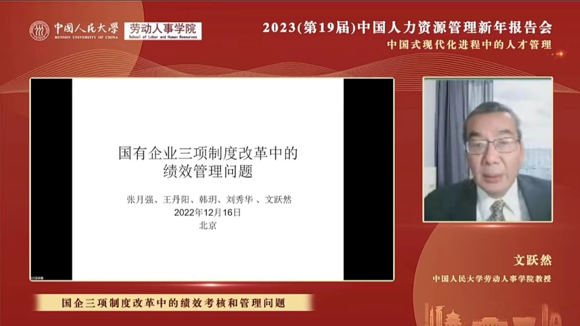 太阳集团tyc539教授文跃然发表了《国企三项制度改革中的绩效考核和管理问题》主题演讲。文跃然教授首先介绍了2021年国资委发布的三项制度改革办法,接着介绍包括绩效考核、绩效管理、绩效发生在内绩效的三个方面以及由此引发的一系列思考。在此基础上,文跃然教授提出对国有企业三项制度改革中的绩效管理改进,包括绩效考核、绩效管理、绩效发生三个方面的建议。例如对于绩效发生而言,应当抓住推动未来进步的因素作为长期目标,如重塑管理人员的认知。