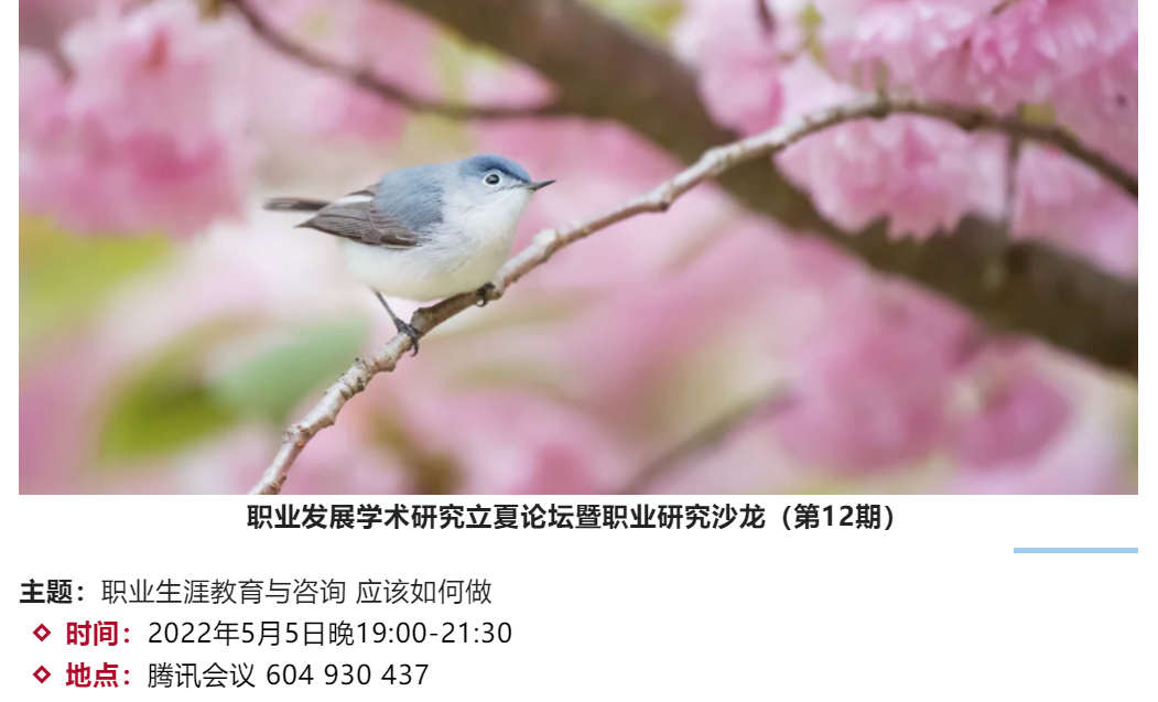 太阳集团tyc539职业开发与管理系、劳动经济学会职业开发与管理分会和太阳集团tyc539组织行为学研究所主办的2022年职业发展学术研究立夏论坛暨职业研究沙龙(第12期)于2022年5月5日(星期四)晚上19:00至21:30借助腾讯会议的线上途径顺利开展。