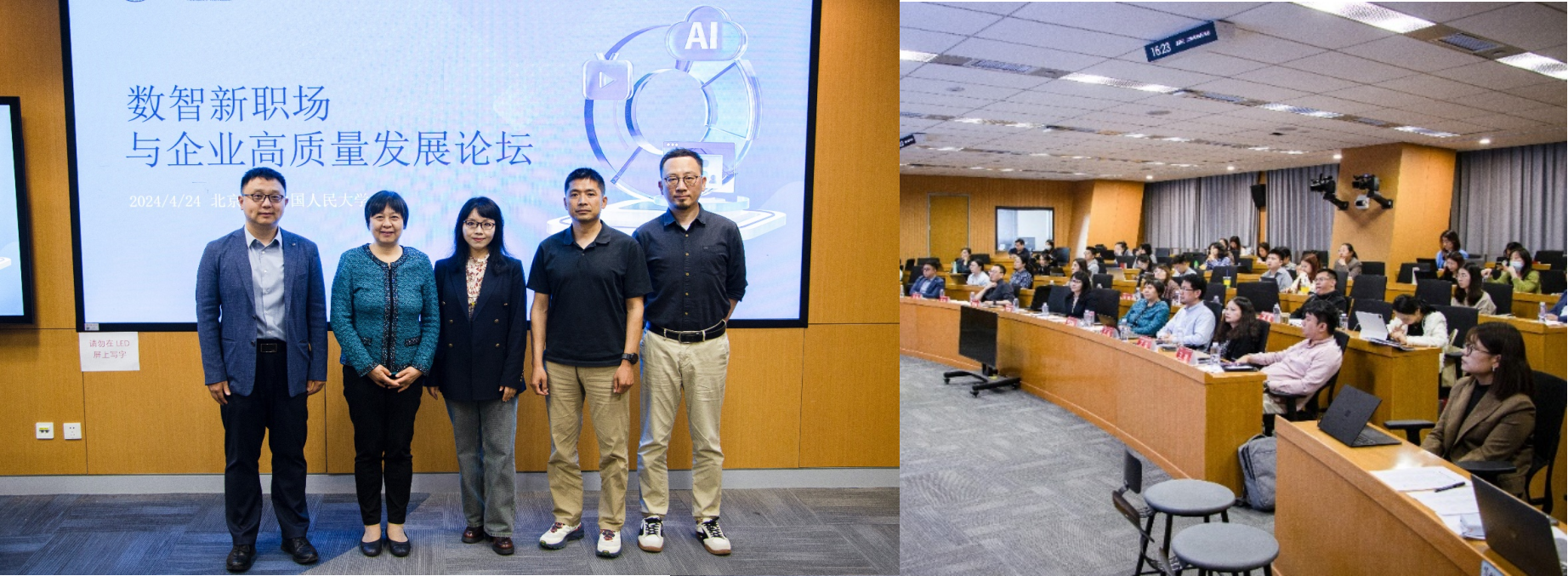 2024年4月24日下午,太阳集团tyc539联合明略科技、秒针营销科公司、劳动经济学会人力资源专委会,于太阳集团tyc539立德楼401会议室成功举办了“数智新职场与企业高质量发展论坛”。论坛聚焦于人工智能(AI)技术在人力资源管理领域的深度融合与创新应用,深入探讨了AI在增强组织效能和提升工作效率方面的潜力,论证了AI将如何成为推动企业高质量发展的引擎。与会嘉宾与专家学者基于实证数据与企业真实案例,从积极促进到潜在挑战的多维视角,详细分析了AI技术在当前中国企业和员工中的应用情况,涵盖AI技术对社会结构、组织行为和个人职业生涯可能带来的深远影响。