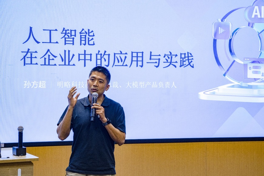 明略科技的高级副总裁孙方超先生为我们带来了业界的前沿声音。他以一场主题为“人工智能在企业中的应用及实践”的精彩演讲,深入剖析了AI技术在企业运营中的实际应用和成效。孙先生更通过分享自己与“小明助手”(AI)互动的生动故事,形象地展示了AI在应用层面的实际操作和潜在价值,表达出对AI塑造数智新职场,提升企业效能的充足信心。
