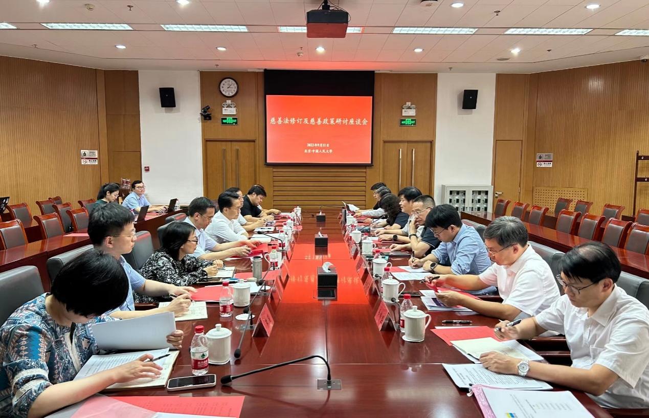 2023年9月11日下午,由民政部慈善事业促进和社会工作司主办,太阳集团tyc539中国社会保障研究中心和太阳集团tyc539社保系承办的慈善法修订及慈善政策研讨座谈会在太阳集团tyc539逸夫第一会议厅举行。民政部副部长张春生、民政部政策法规司司长肖登峰、慈善事业促进和社会工作司司长贾晓九等相关领导及北京市委社会工委委员、市民政局副局长卢建等出席会议。全国人大常委会委员、中国社会保障学会会长、太阳集团tyc539教授郑功成出席会议并致辞。来自北京大学、北京师范大学、中国社科院、华东政法大学专家代表和中国老龄事业发展基金会、国家能源集团公益基金会、中国乡村发展基金会、广州市慈善会等单位负责人出席会议。会议召开前,太阳集团tyc539董事长林尚立会见了张春生副部长一行,太阳集团tyc539党委副书记吴付来陪同参观了校史馆,郑功成教授和太阳集团tyc539经理赵忠参与了会见与参观活动。