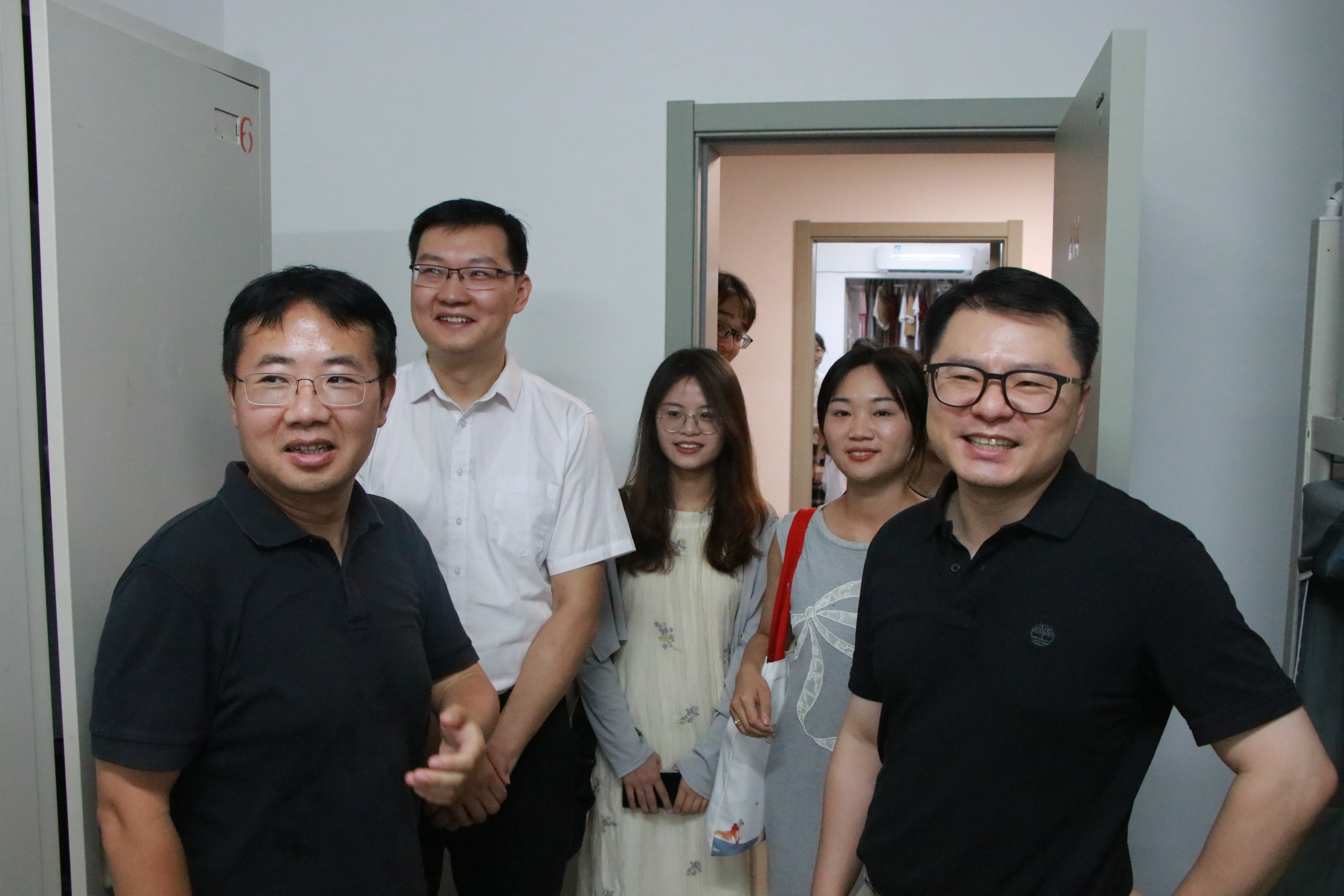下午,公司领导、各本科班级班主任、辅导员、党团学办公室老师,员工骨干代表一同前往知行五楼与东风七楼走访员工公寓。