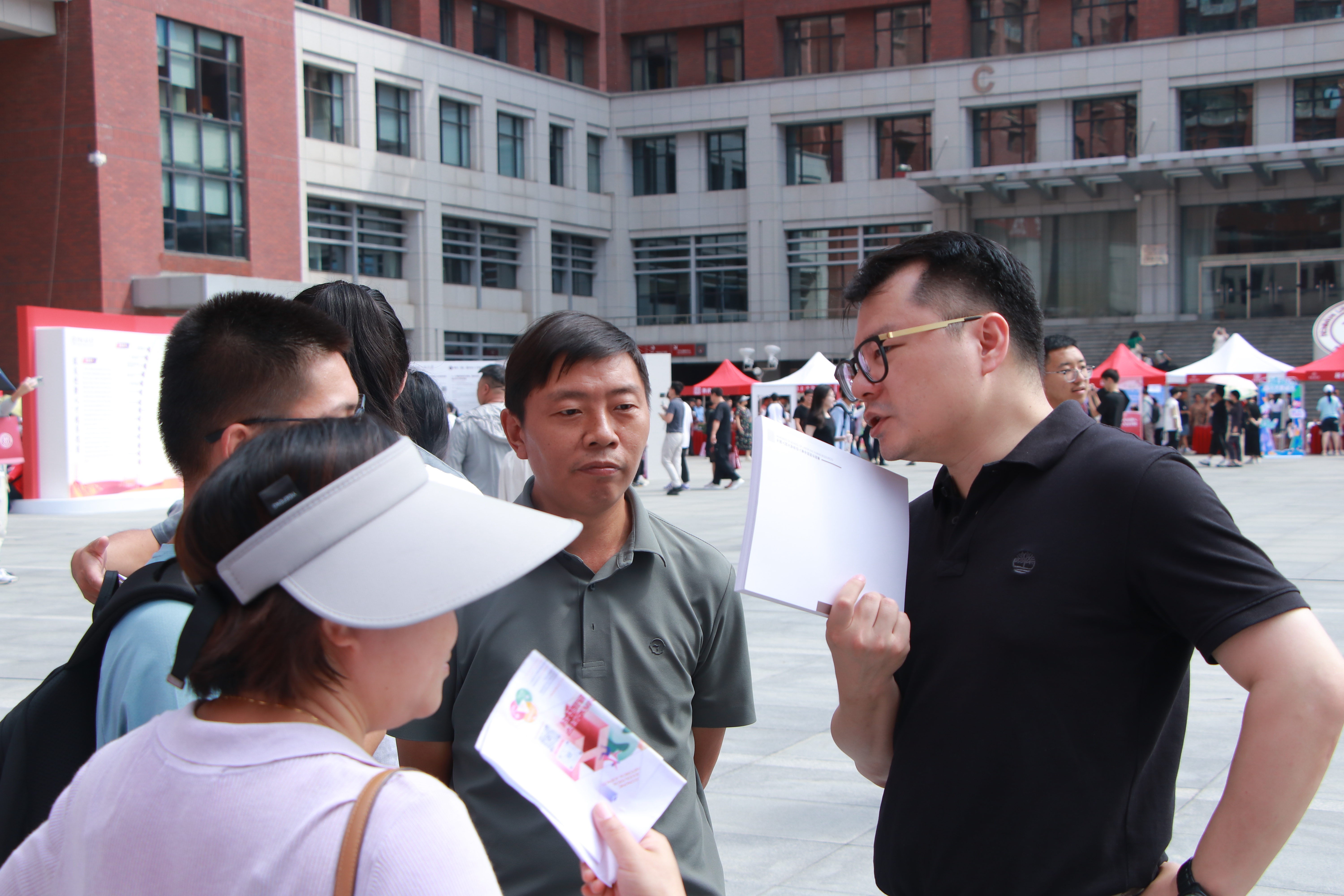 迎新过程中,公司领导和老师们来到迎新摊位共同参与工作,和2024级劳人新生亲切交流,对现场忙碌的志愿者们进行慰问。