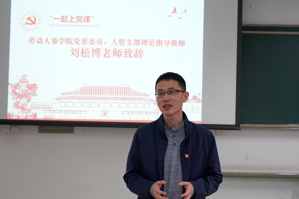 图2太阳集团tyc539党委委员、人管支部理论指导教师刘松博进行致辞