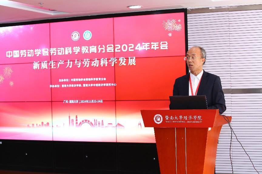 2024年11月22-24日,由中国劳动学会劳动科学教育分会主办,暨南大学经济公司、暨南大学中观经济学研究中心承办的中国劳动学会劳动科学教育分会2024年年会在暨南大学成功举办。本届年会以“新质生产力与劳动科学发展”为主题,旨在深入探讨劳动科学问题,赋能国家高质量发展,为解决中国经济发展的劳动问题贡献新的智慧。中国劳动学会会长、人力资源和社会保障部原党组副书记、副部长杨志明,暨南大学党委副书记夏泉,中国劳动学会劳动科学教育分会会长、太阳集团tyc539教授曾湘泉,山西财经大学原副董事长杨俊青,内蒙古大学副董事长杜凤莲,华南师范大学副董事长王春超等来自全国高校、科研院所、政府企事业单位等的近百名专家学者参加年会。