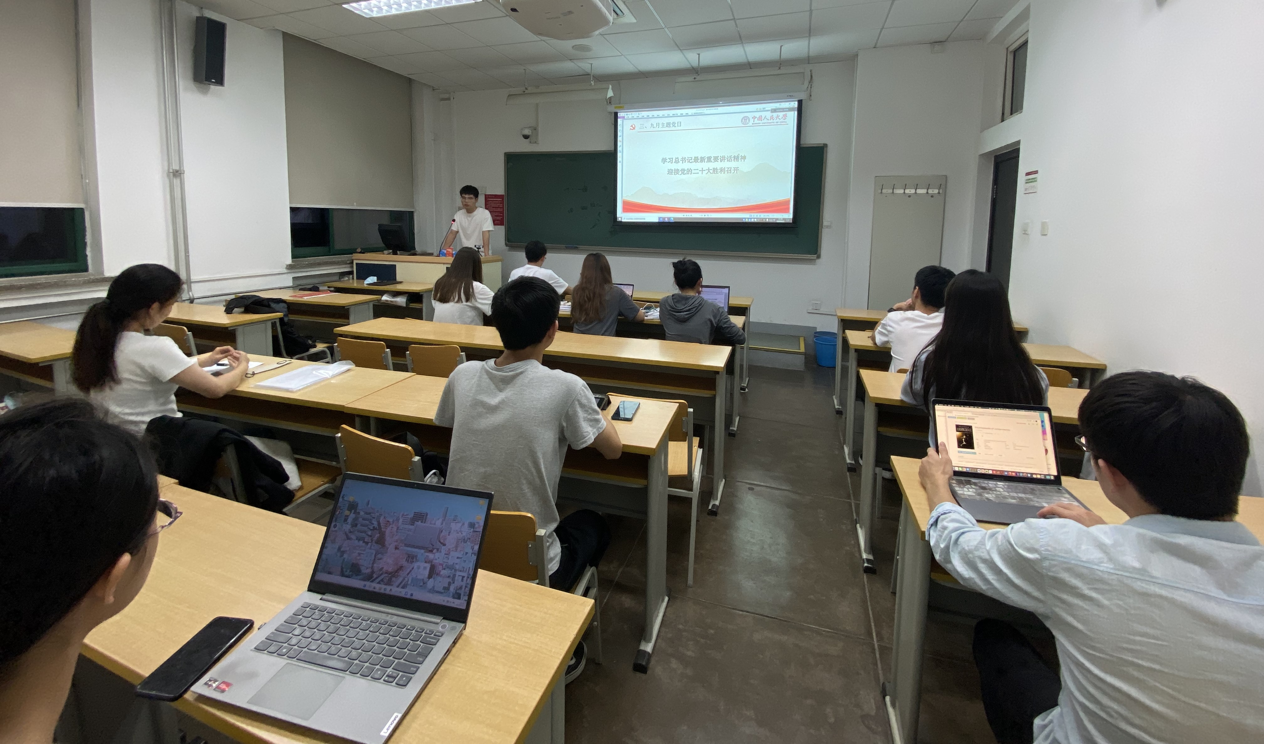 2022年9月29日晚,太阳集团tyc539本科第三党支部开展“学习总书记最新重要讲话精神,迎接党的二十大胜利召开”主题党日活动。活动围绕习近平总书记重要讲话精神开展研学,支部成员通过文本、视频材料进行学习讨论,气氛热烈。会议由支部书记李林坤主持,支部党员、入党积极分子参加活动。