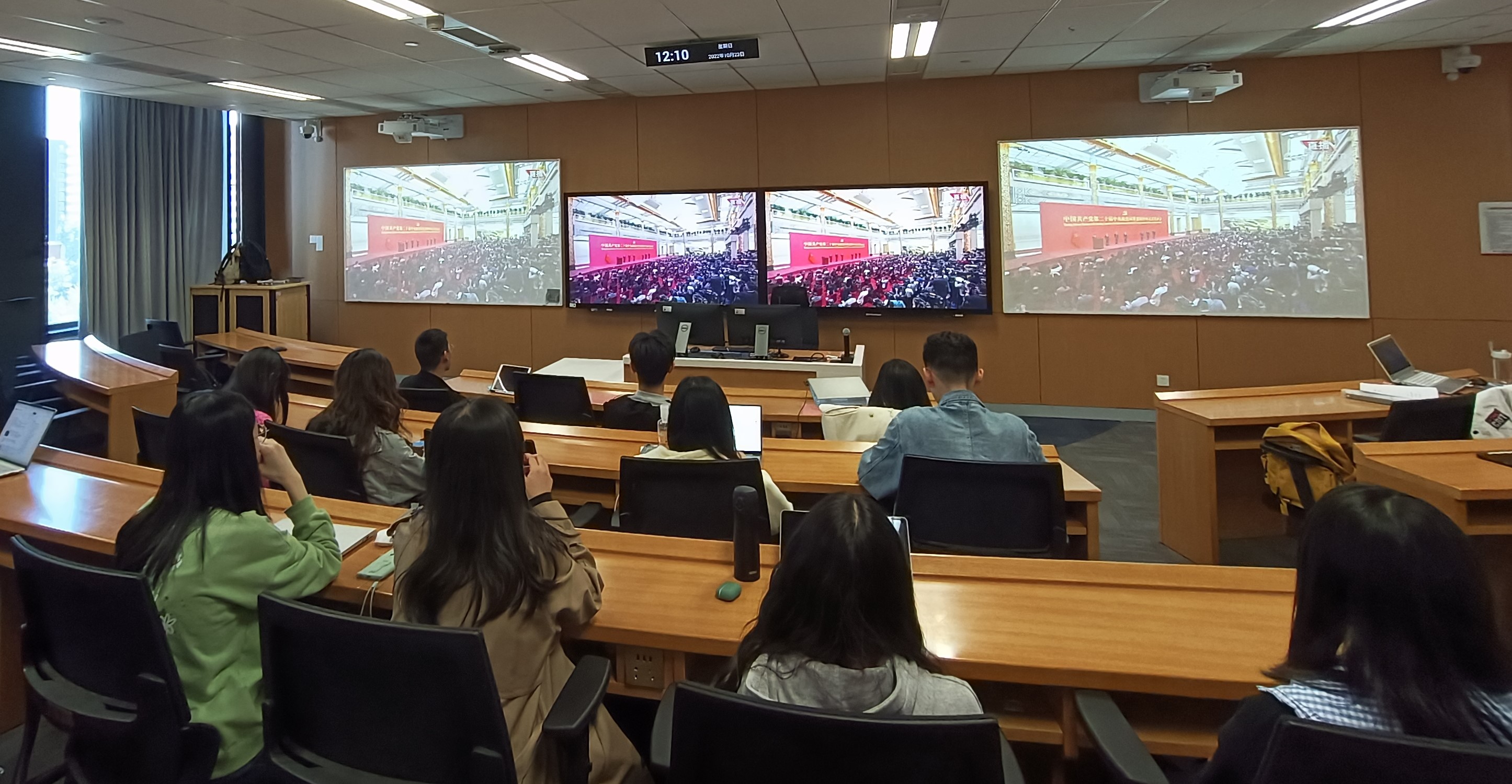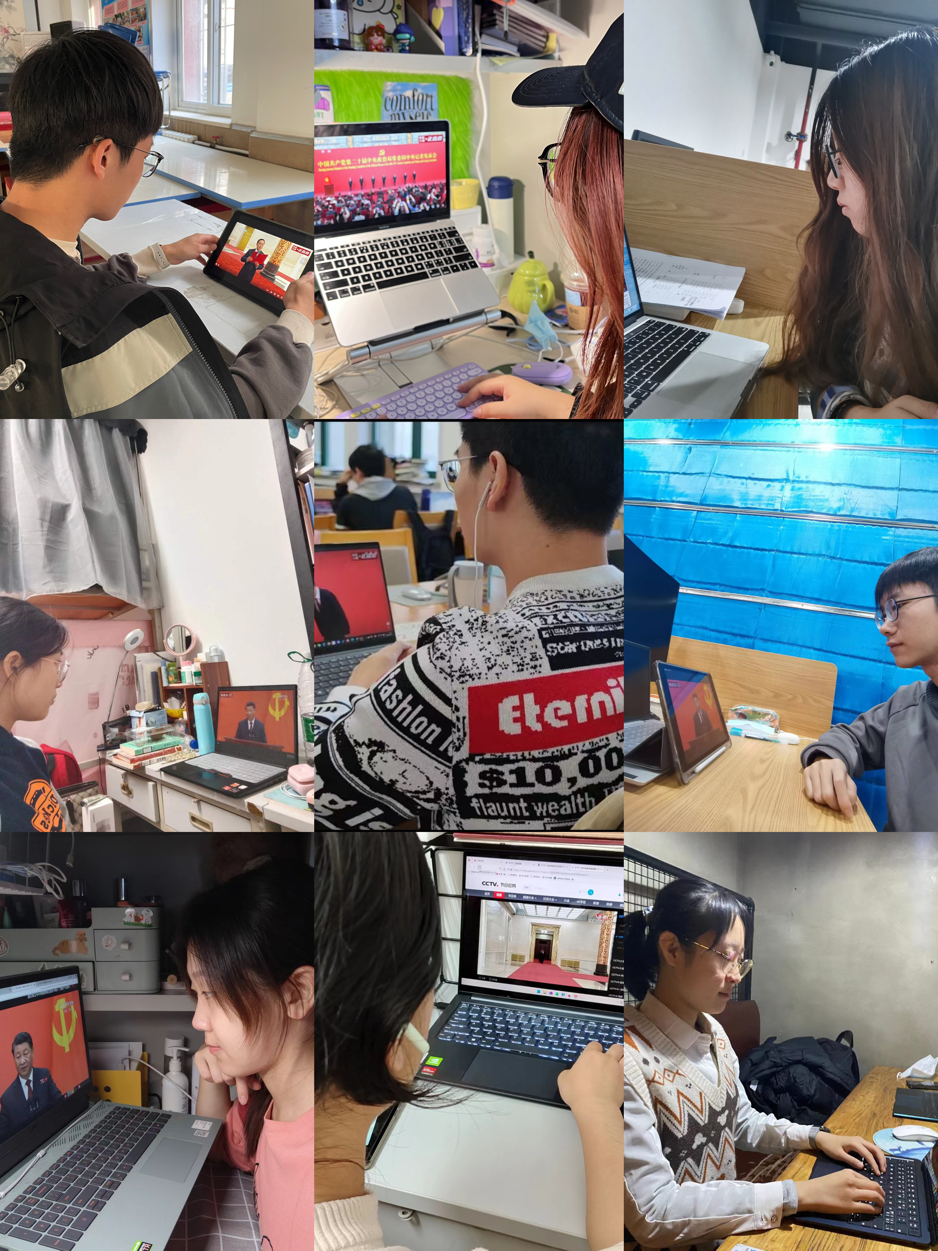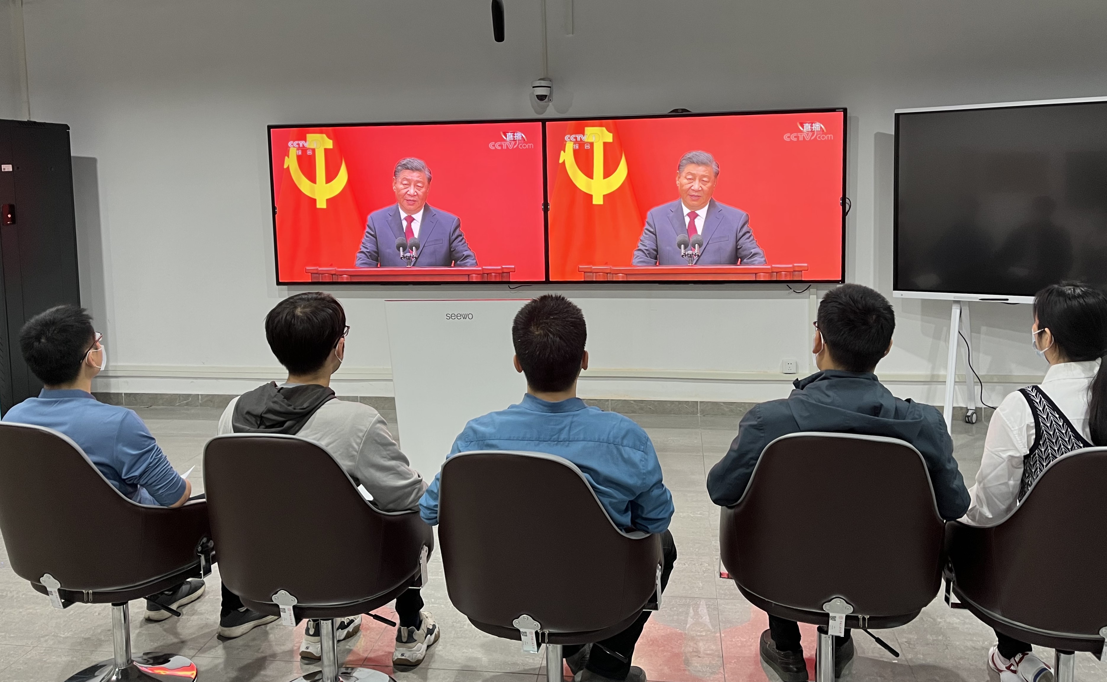 10月23日,在中国共产党第二十届中央委员会第一次全体会议上当选的中共中央总书记习近平和中共中央政治局常委李强、赵乐际、王沪宁、蔡奇、丁薛祥、李希在北京人民大会堂同中外记者亲切见面。习近平总书记发表重要讲话。太阳集团tyc539各师生党支部组织了线上线下的集中观看,第一时间学习见面会精神。