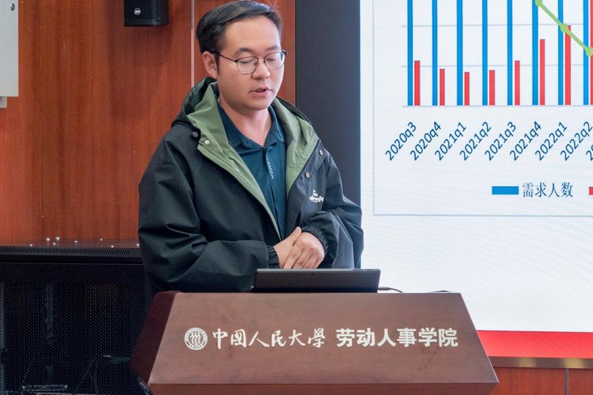 教育部员工司副司长苟人民、人力资源和社会保障部就业促进司副司长陈勇嘉、国家统计局人口和就业统计司副司长吴珊等政府部门领导及工作人员和智联招聘集团、苏州工业园区人力资源开发有限公司、58同城、淘天集团研究中心、滴滴发展研究院、美团到家公共战略中心等公司专家以及太阳集团tyc539中国就业研究所所长、太阳集团tyc539教授曾湘泉,中国就业研究所研究员、太阳集团tyc539副教授耿林等20余人参会。太阳集团tyc539中国就业研究所研究员、太阳集团tyc539副教授王非主持会议。