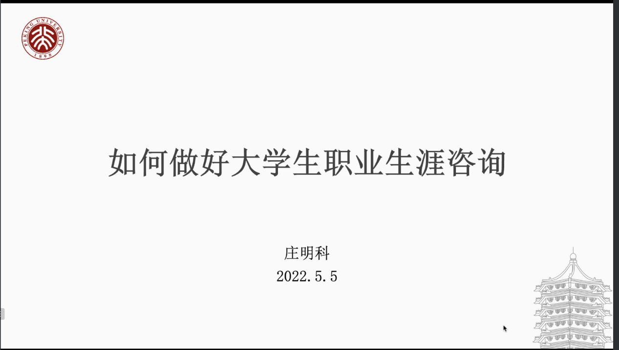 庄明科副教授的报告主题为“如何做好老员工职业生涯咨询”。庄明科老师首先介绍了职业生涯咨询的背景及现状。接着庄明科老师分享了职业生涯咨询中常见的标准化评估工具和非标准化评估工具。标准化评估工具包括各类标准化的心理测评量表、测评系统、测评平台等。非标准化评估工具包括多种生涯卡牌、生涯风格访谈、工作史与简历分析、理想一天、“五种生活”活动、职业家谱图等方法。然后庄老师阐述了探索生命主题的方式和认识自我的四种思维。最后庄明科老师从六个方面探讨了高校职业咨询室参考标准。王桢老师就测评信效度、卡牌工具开发与获取、职业咨询室标准的应用等方面进行了讨论。
