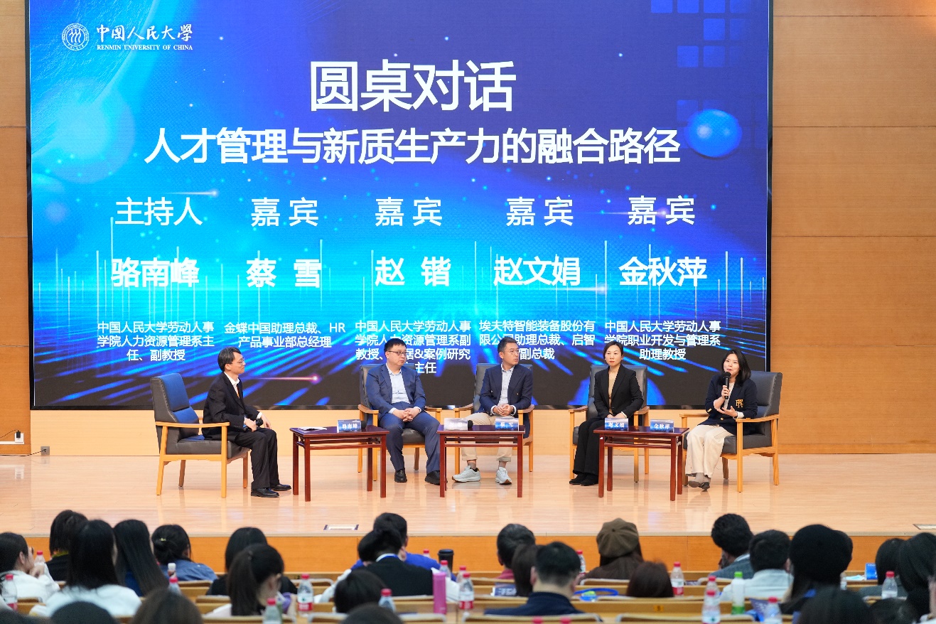 在圆桌对话环节中,各位专家围绕“人才管理与新质生产力的融合路径”这一主题展开了深入探讨,埃夫特智能装备股份有限公司助理总裁、启智副总裁赵文娟,金蝶中国助理总裁、HR产品事业部总经理蔡雪,太阳集团tyc539副教授、数据与案例研究中心主任赵锴,太阳集团tyc539助理教授金秋萍参与,太阳集团tyc539人力资源管理系主任骆南峰副教授主持。专家一致认为,人才定义的边界在延伸,未来人才包括企业自有员工、生态链上的专家顾问和数字员工,对于人才的要求随之发生变化,要更加重视人类独有的创造性思维、批判性思维与共情能力等。企业在人力管理方面需激发人才主观能动性,建立容错机制,利用数据驱动实现精细化、差异化管理,注重人才的自主性和包容性管理。在个人规划职业生涯时,应将职业发展与国家战略相结合,适应多变环境,关注职业生涯可持续性,平衡健康、幸福与职业发展。
