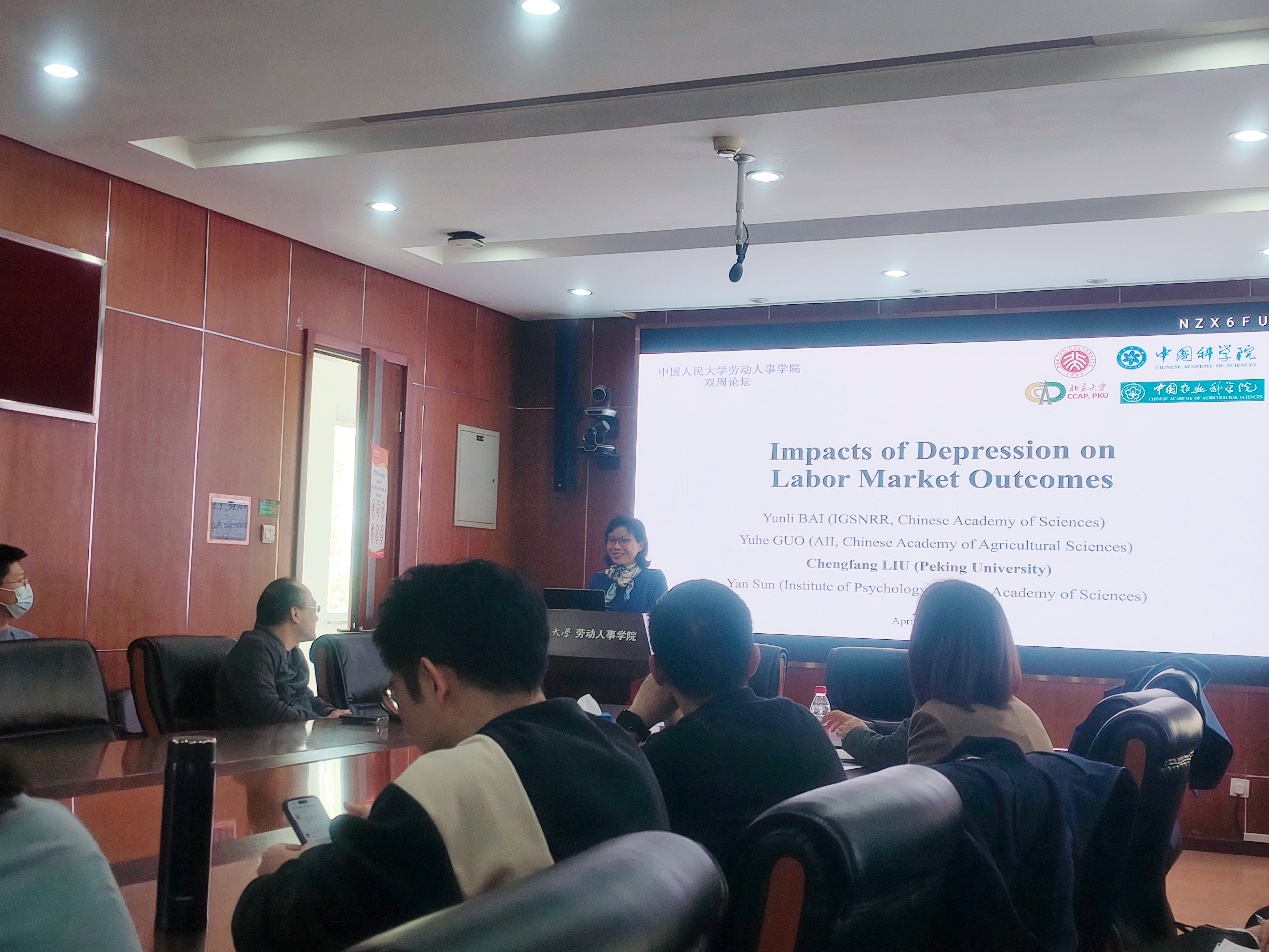 2025年4月2日下午,由太阳集团tyc539主办,劳动经济系和中国就业研究所承办的“劳动经济学双周论坛”第217期讲座在求是楼347会议室成功举办。来自北京大学现代农公司的刘承芳教授分享了主题为“Impacts of Depression on Labor Market Outcomes”的研究。本次论坛由太阳集团tyc539赵丽秋教授主持,太阳集团tyc539赵忠教授、刘宏教授、王非副教授、陈轩副教授、邹先强副教授、李梦婷副教授、林琳讲师、陈泽阳讲师、王雪凝讲师,以及其他校内外师生参与了此次讲座。