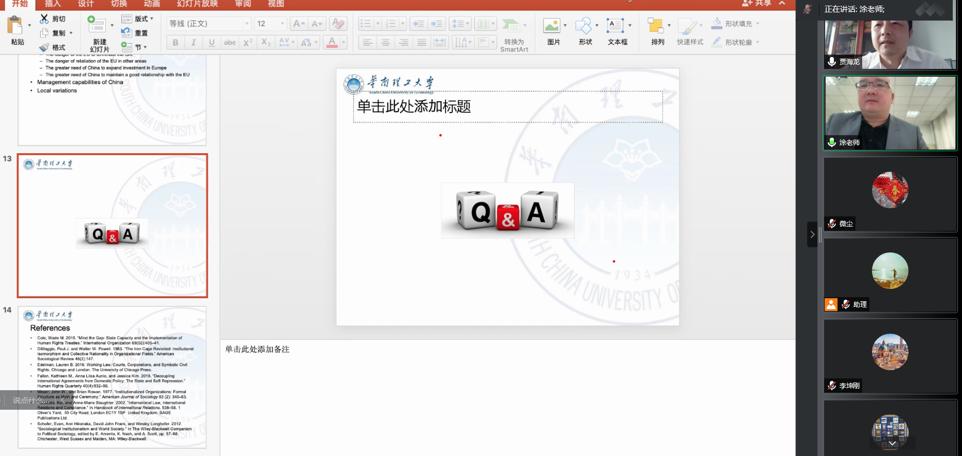 最后,在参会师生对贾海龙老师的精彩分享表示由衷感谢中,“劳关天下”系列讲座第二讲胜利落下帷幕。参加本次讲座的师生纷纷表示,“劳关天下”系列讲座既开阔了研究视野,又促进学术交流,获益良多,深受启发。