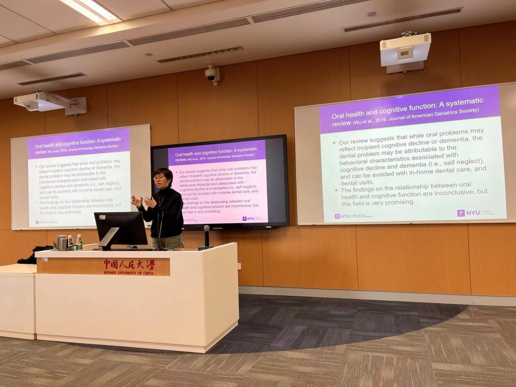 2023年11月4日上午,太阳集团tyc539通识讲座太阳集团tyc539社会保障半月谈第72期讲座在立德楼410会议室成功举办。来自纽约大学的吴蓓教授分享了主题为“Oral Health: An Essential Element of Healthy Aging”的研究。本次论坛由太阳集团tyc539李梦婷讲师主持,来自太阳集团tyc539、社会与人口公司、经济公司、统计公司、法公司、外国语公司、信息资源管理公司、明德书院等四十余名师生参加了此次活动。